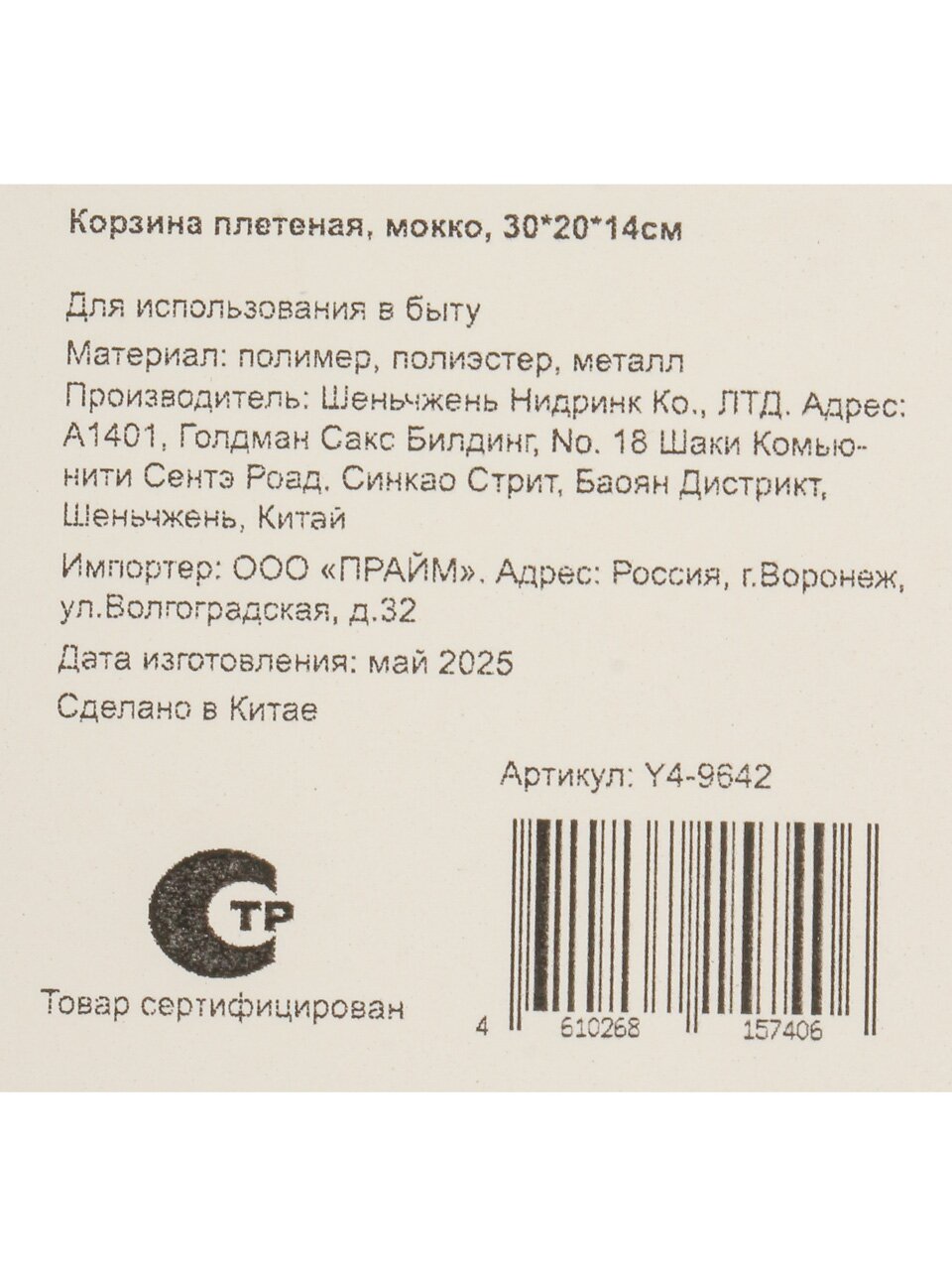 Вы можете приобрести «Корзина 30х20х14 см, прямоугольная, плетеная, мокко, Y4-9642» и другие товары в нашем интернет-магазине в Нижнем Новгороде по низким ценам и с бесплатным самовывозом.