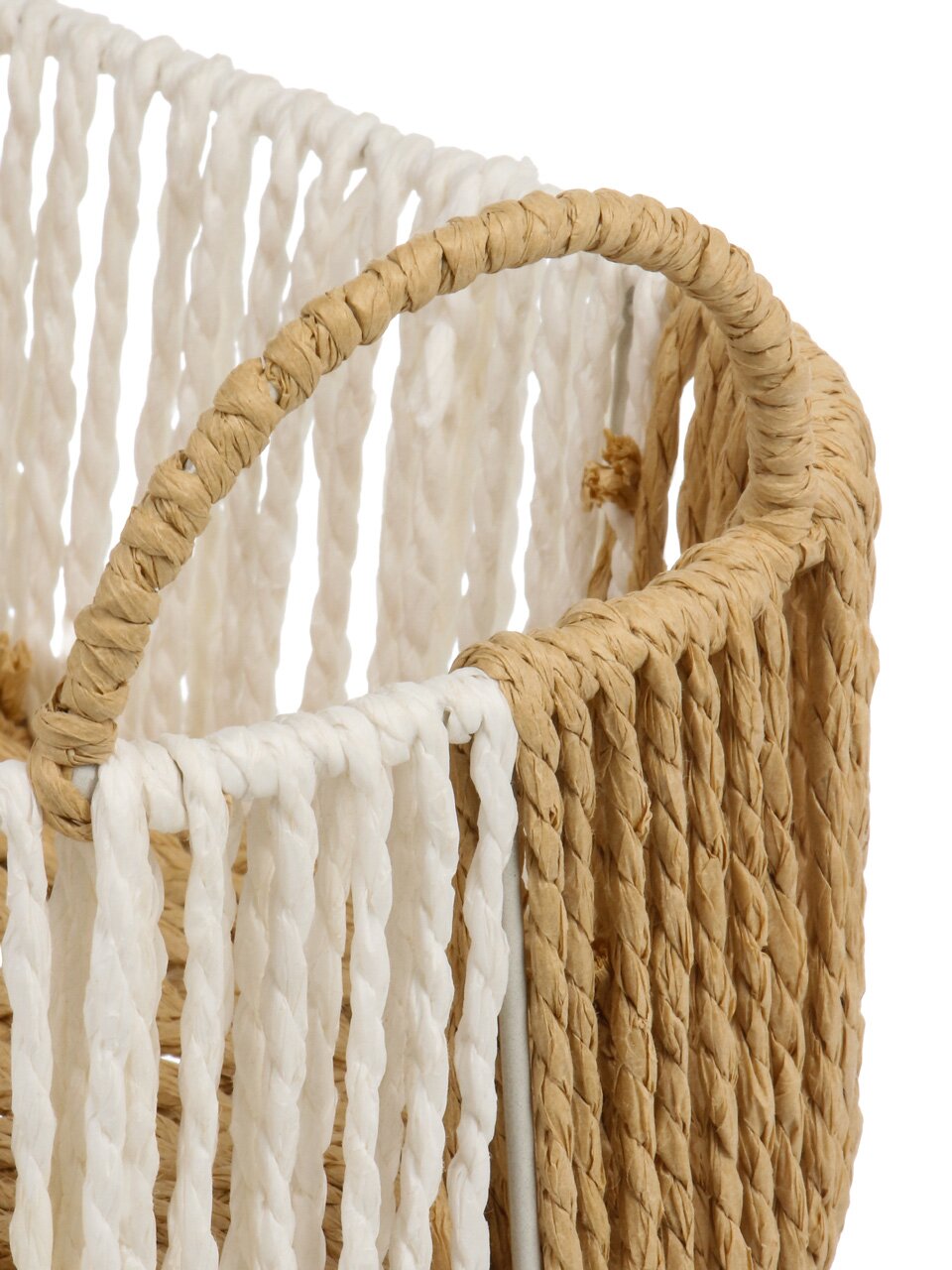 Корзина выполнена из хлопка с металлическим каркасом, что обеспечивает жёсткость, долговечность и лёгкость. Она устойчива к деформации и выдерживает ежедневное использование.