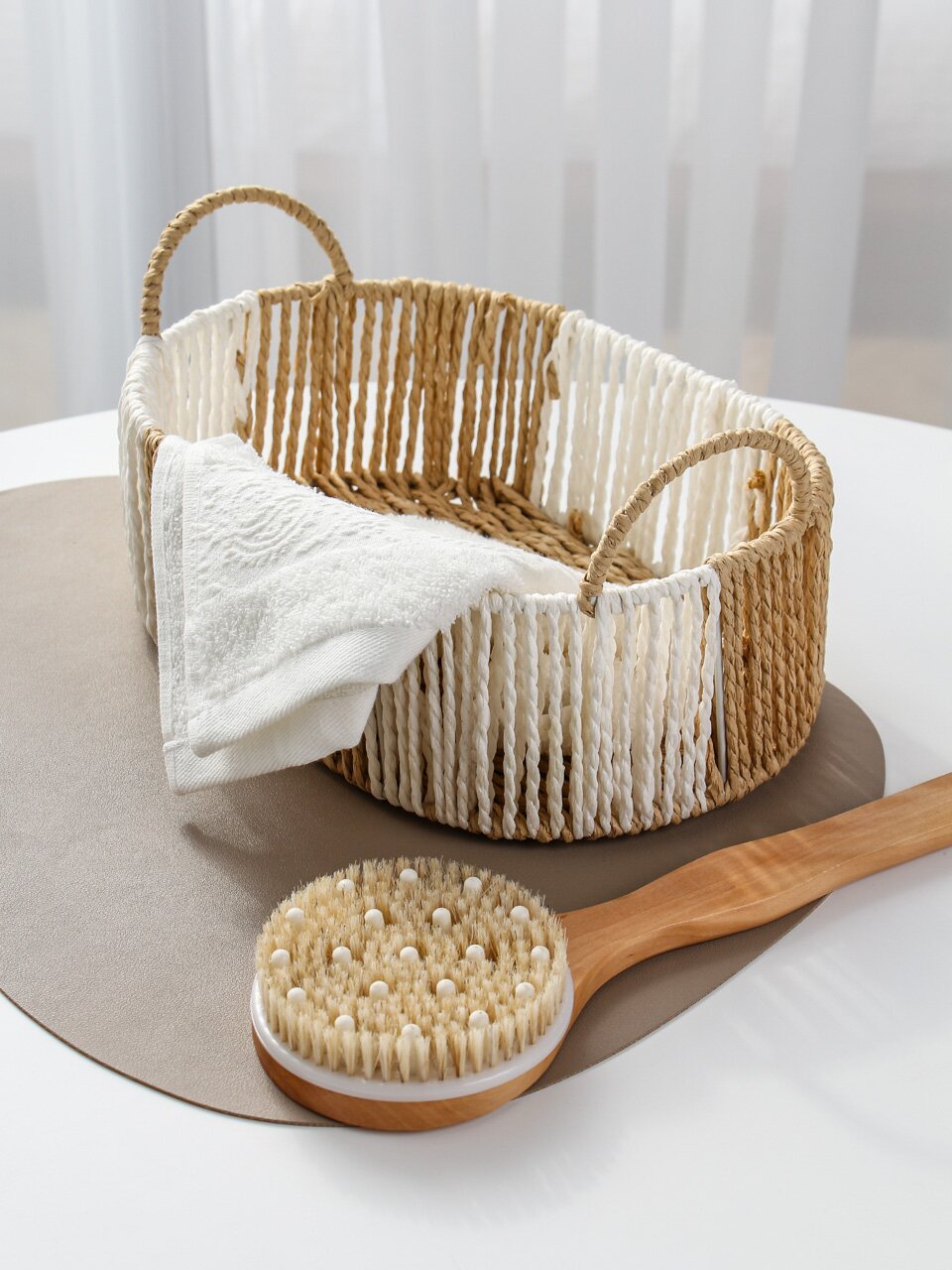 Часто спрашивают: как использовать плетёную корзину? Она отлично подходит для хранения одежды, аксессуаров, ниток для вязания, игрушек, косметики или фруктов. Можно ли выбрать корзину для дачи или подарка? Да, универсальный дизайн и средний размер делают её идеальным вариантом для дачи, дома или оформления подарочного набора. В отличие от пластиковых аналогов, хлопковая корзина приятна на ощупь, не накапливает статическое электричество и экологична.
