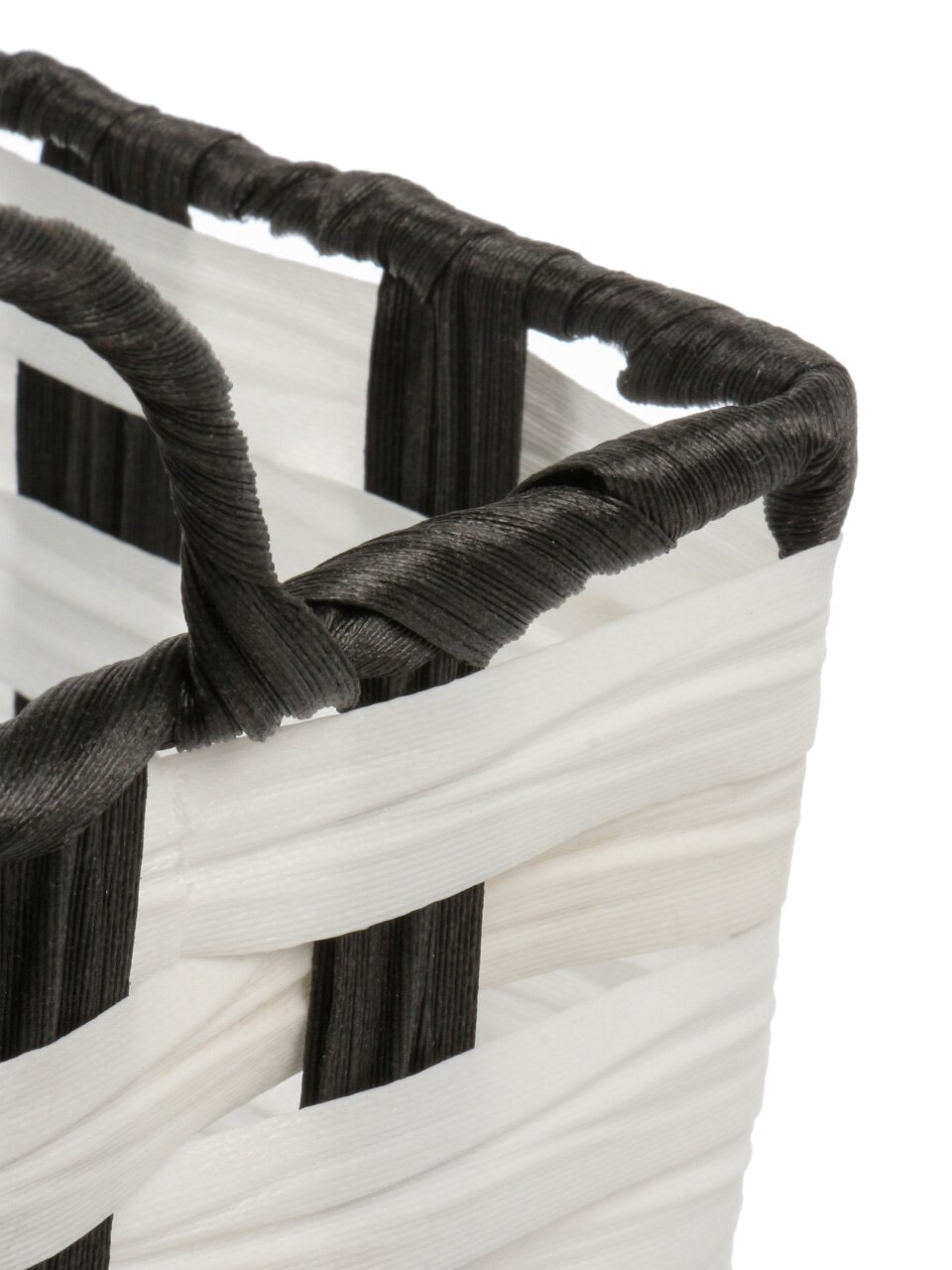 - Уникальный дизайн: прямоугольная форма, белый цвет и съемная текстильная вкладка делают корзину декоративной и современной.