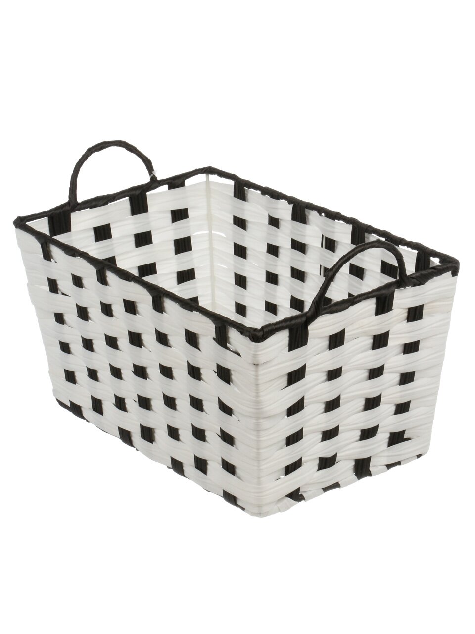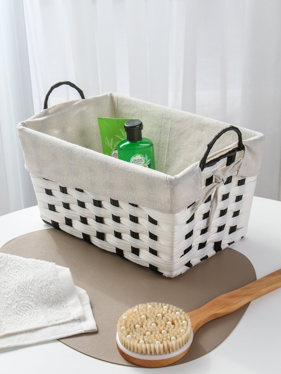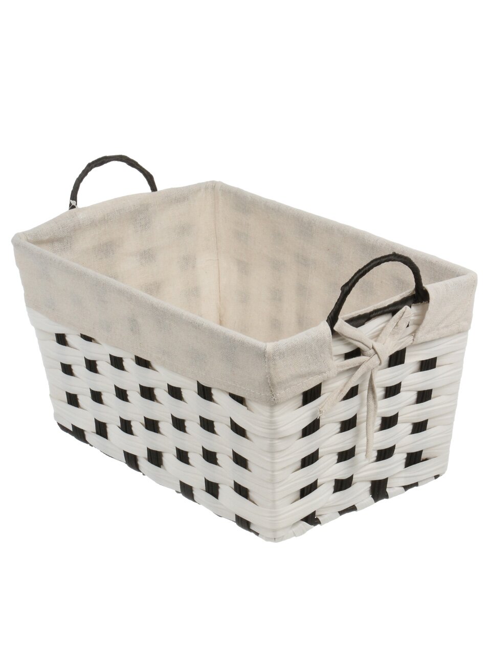 Плетеная прямоугольная корзина — это универсальный органайзер для хранения вещей, который легко впишется в любой интерьер. Благодаря натуральным материалам (хлопок, полиэстер, металл) и удобным ручкам для переноски, корзина сочетает в себе легкость, прочность и практичность. Часто ищут: «какая корзина лучше для вязания», «как выбрать корзину для хранения вещей», «чем отличается плетеная корзина от пластиковой». В отличие от пластиковых аналогов, данная модель не выделяет запаха и выглядит более эстетично — белый цвет и аккуратная текстильная вкладка подчеркнут чистоту и порядок в доме.