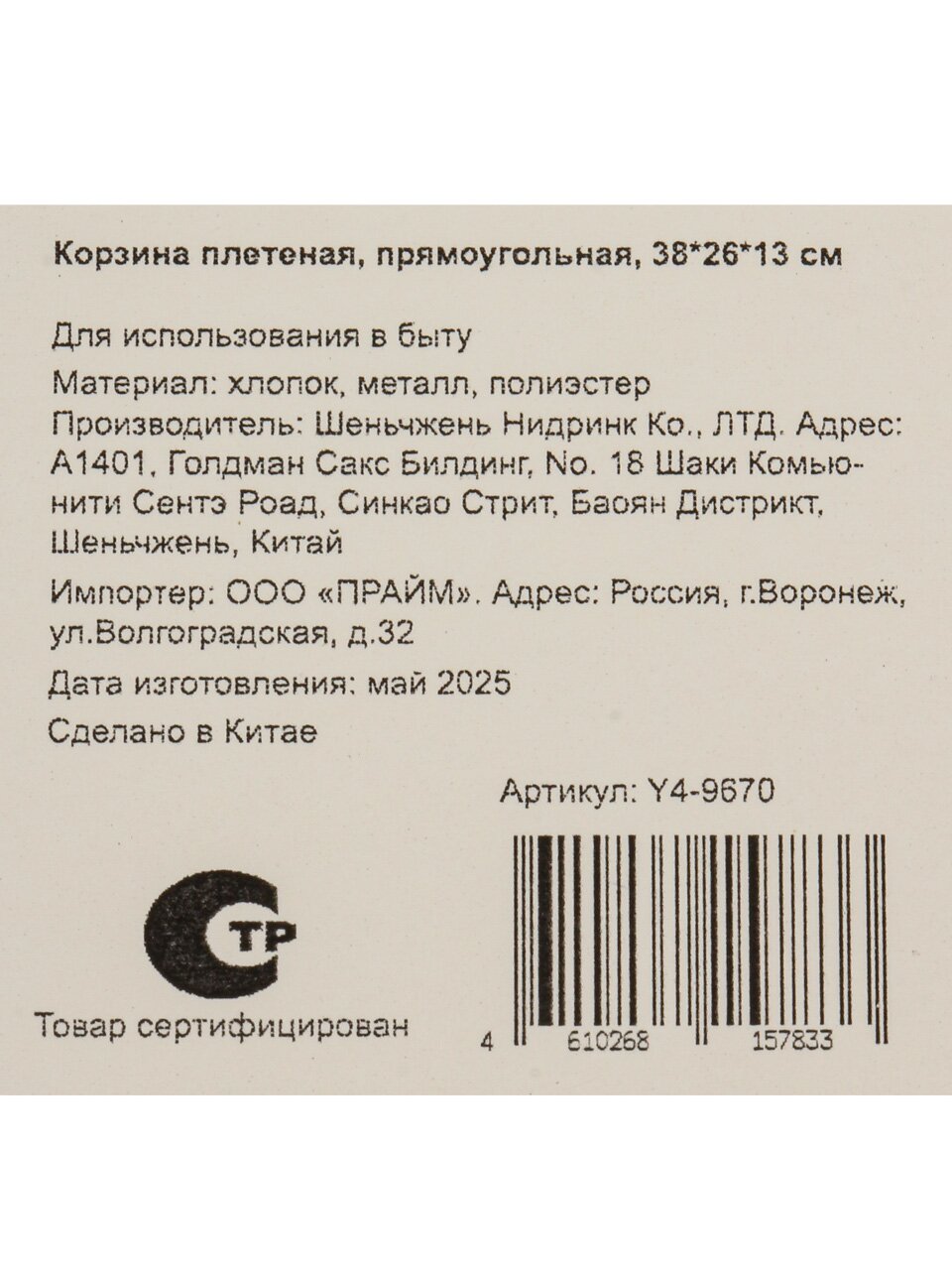 Вы можете приобрести «Корзина 38х26х13 см, прямоугольная, плетеная, Y4-9670» и другие товары в нашем интернет-магазине в Смоленске по низким ценам и с бесплатным самовывозом.