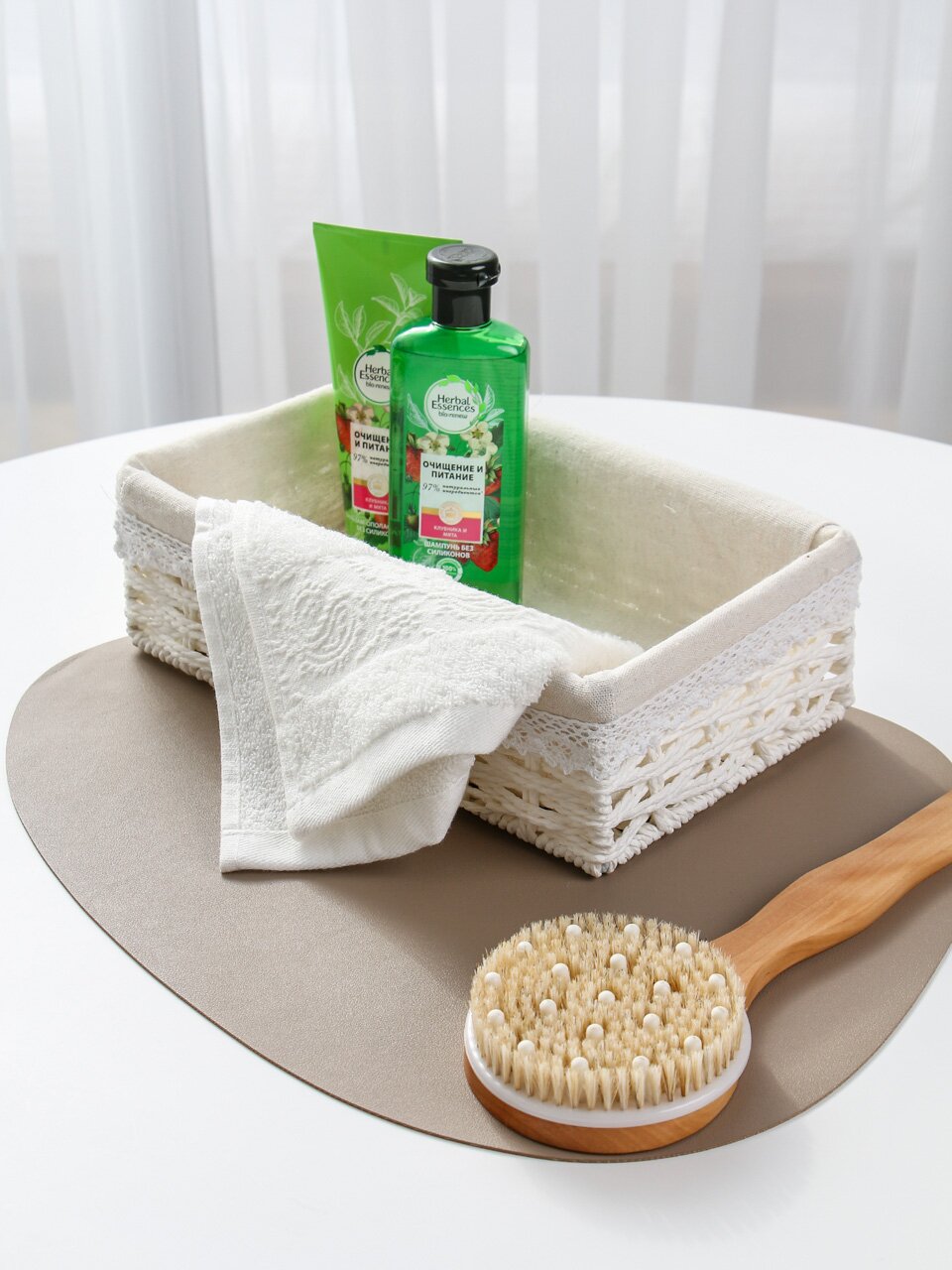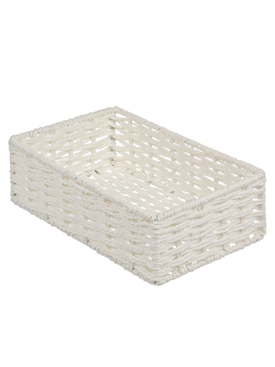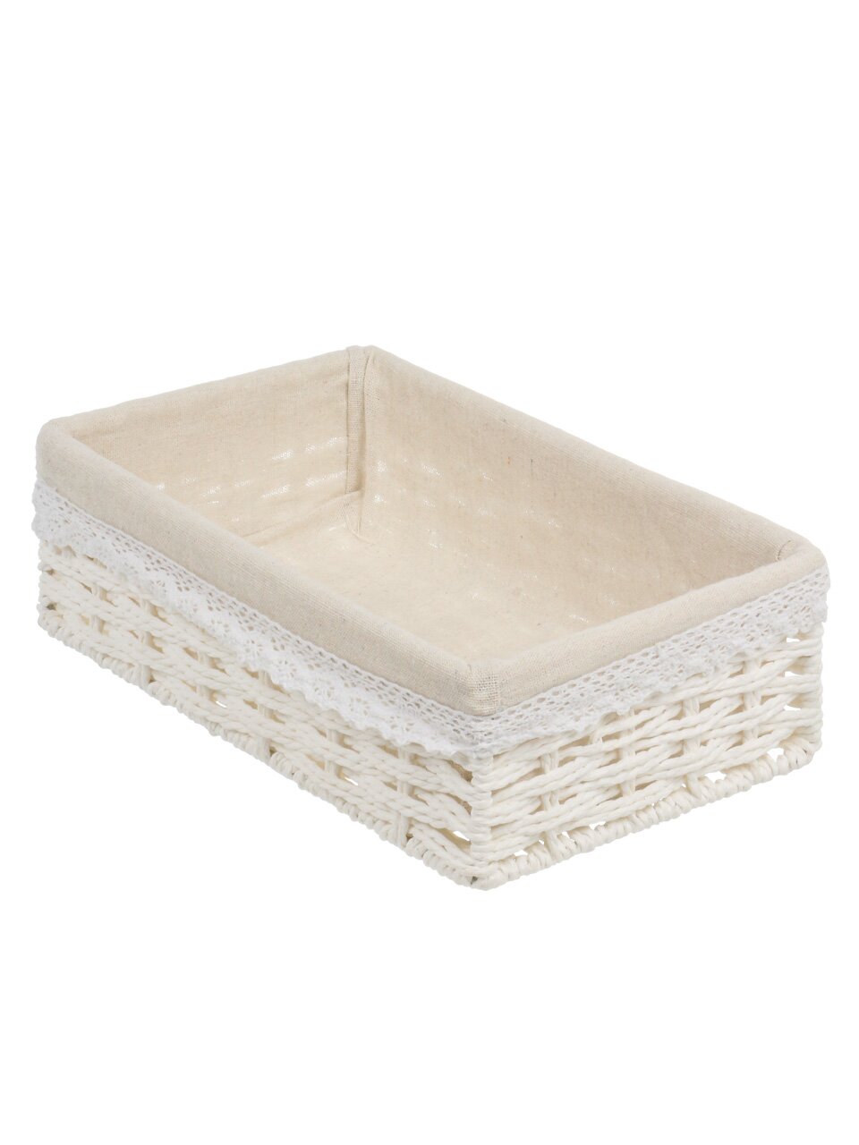 Если вы ищете, какую корзину выбрать для мелочей или как организовать пространство на полке, эта прямоугольная плетёная корзина — оптимальный вариант. Благодаря среднему размеру и универсальному белому цвету корзина гармонирует с любым интерьером, а текстильная вкладка защищает вещи от пыли и облегчает уход. В отличие от изделий из ротанга, корзина легче, не боится деформации и проста в очистке — достаточно протереть влажной салфеткой.