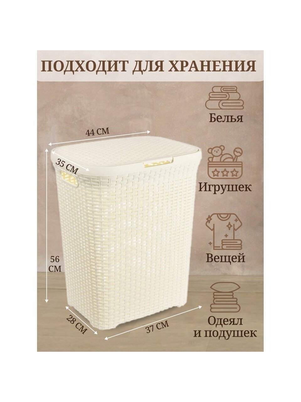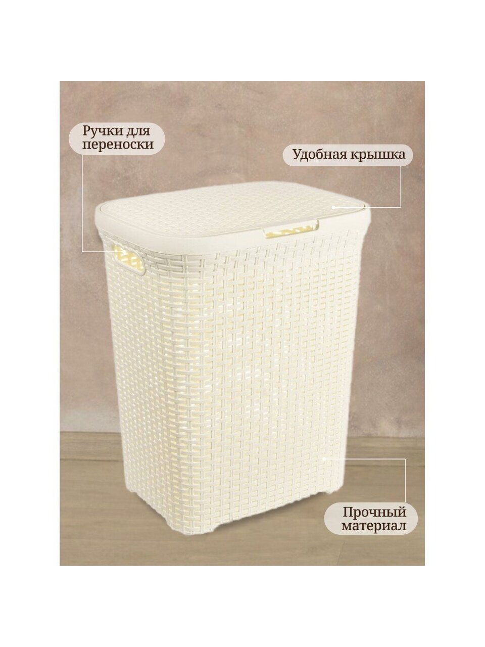 Вы можете приобрести «Корзина для белья, 60 л, прямоугольная, плетеная, пластик, слоновая кость, Violet, 186026» и другие товары в нашем интернет-магазине в Курске по низким ценам и с бесплатным самовывозом.