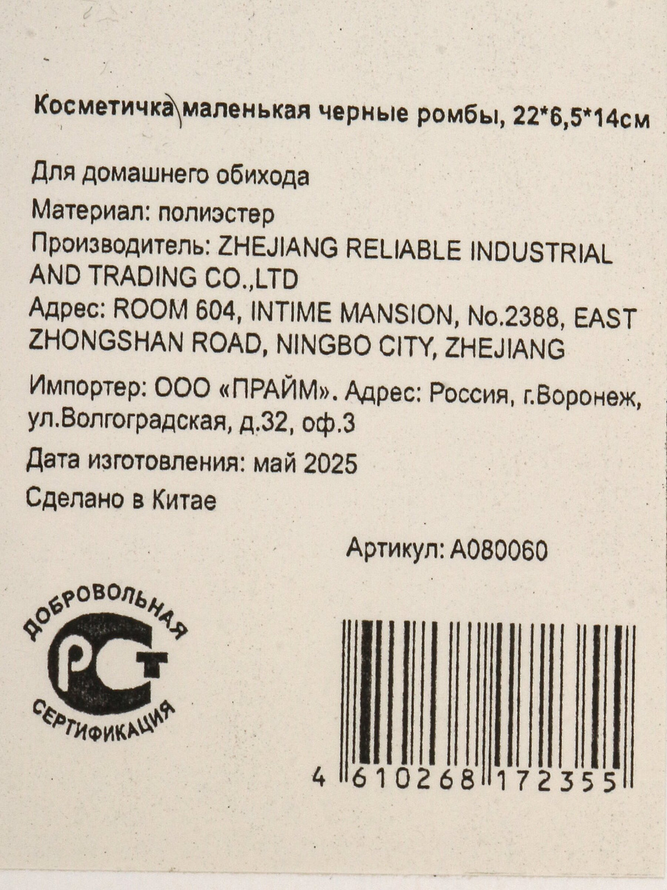 Косметичка маленькая черные ромбы, 22Х6.5Х14см, A080060
