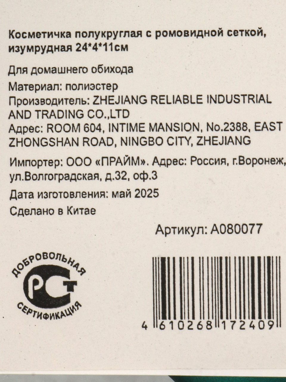 Вы можете приобрести «Косметичка полукруглая с ромовидной сеткой, изумрудная 24Х4Х11см, A080077» и другие товары в нашем интернет-магазине в Нижнем Новгороде по низким ценам и с бесплатным самовывозом.