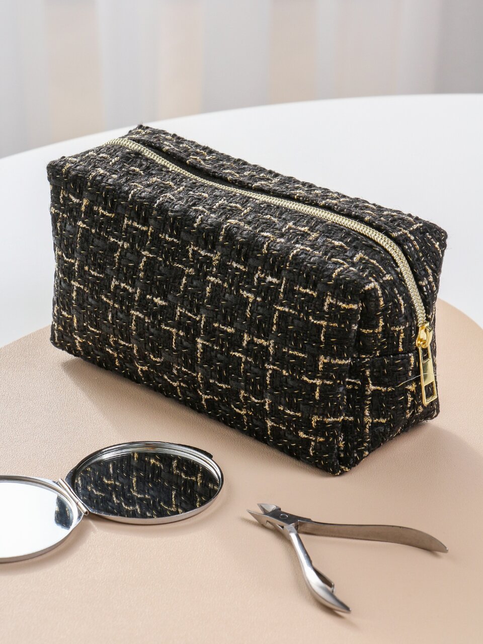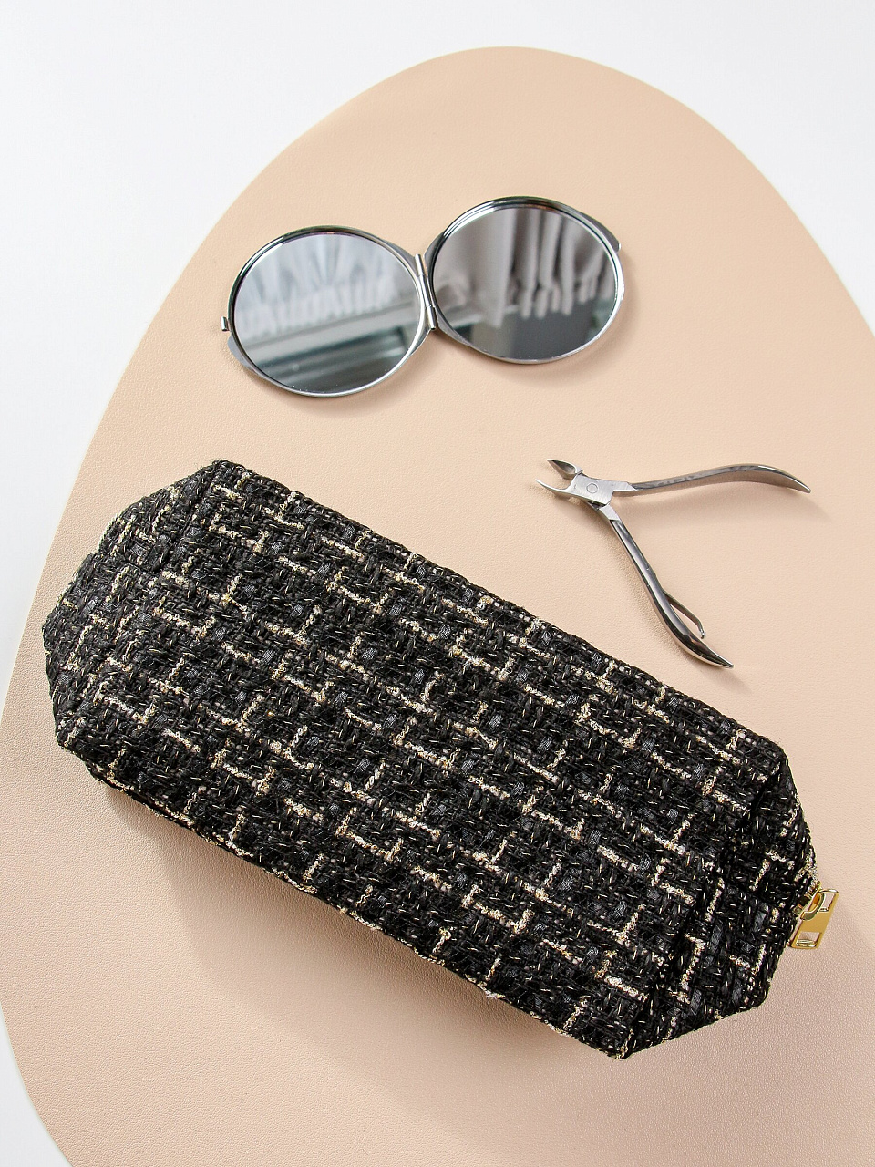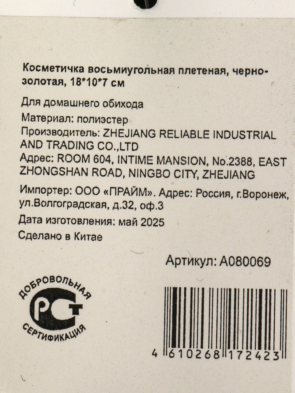 Космметичка восьмиугольная плетеная, черно-золотая, 18Х10Х7см, A080069