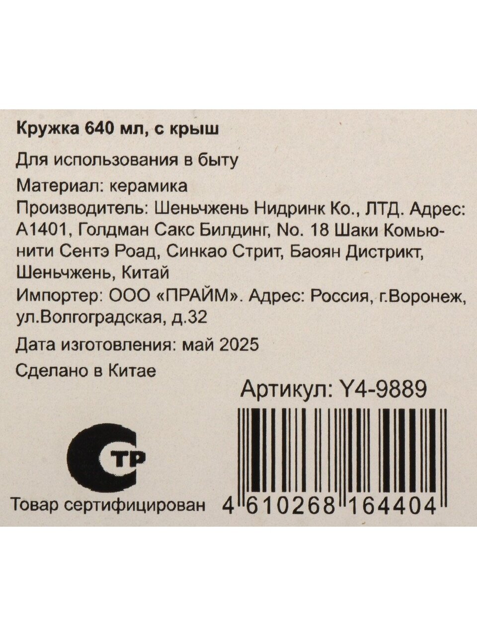 Вы можете приобрести «Кружка керамика, 640 мл, с крышкой, Y4-9889» и другие товары в нашем интернет-магазине в Казани по низким ценам и с бесплатным самовывозом.