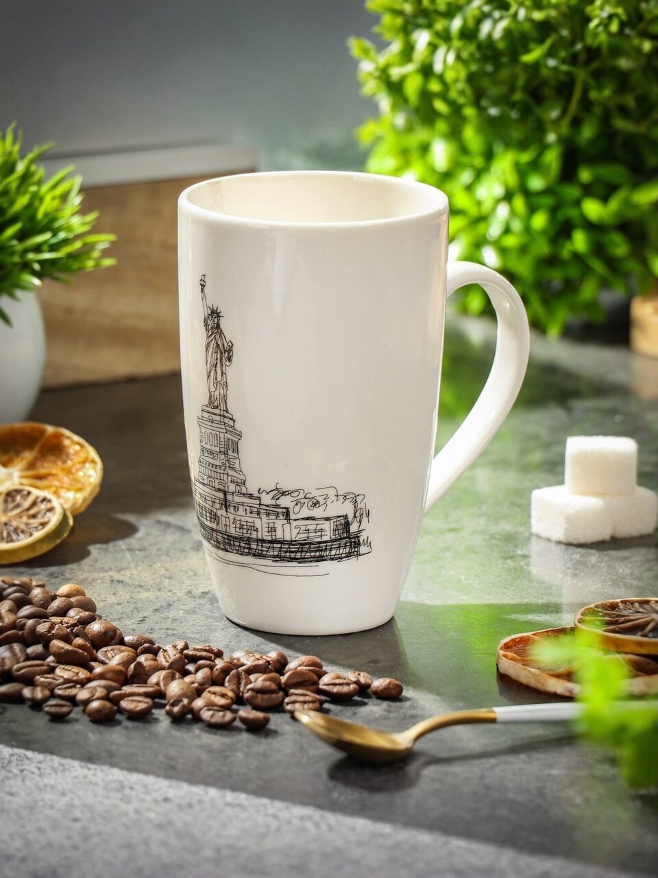 - Уникальный дизайн с мотивами городов — выделяется среди стандартных кружек, отлично впишется в современный интерьер.