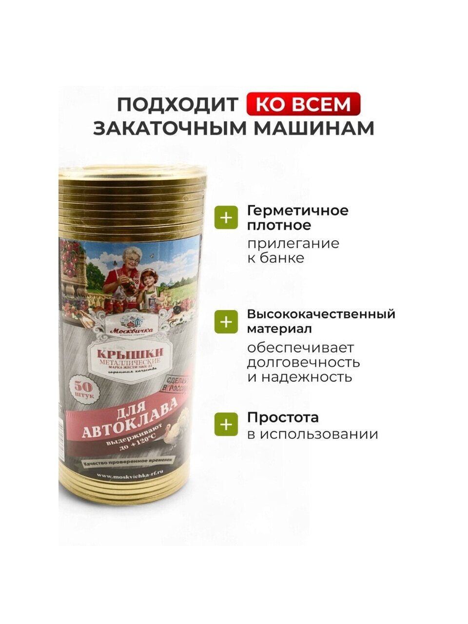 Крышки для консервирования идеально подойдут для автоклава, а так же для домохозяйки, ведь они закатываются любой закаточной машинкой без каких-либо проблем.