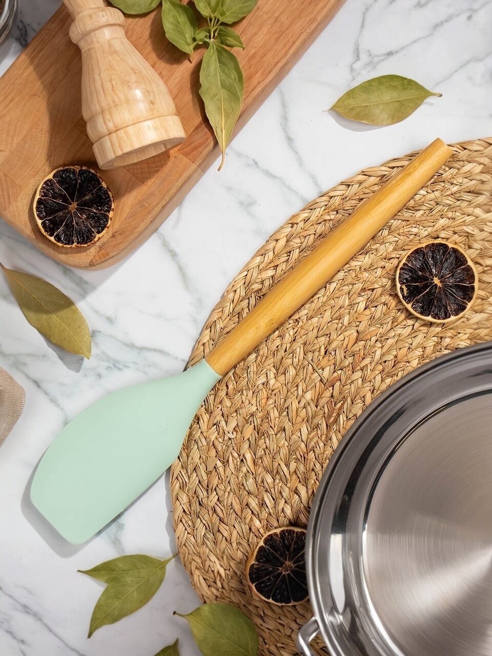 - Мятный цвет добавляет свежести и оригинальности дизайну лопатки. Такой аксессуар может стать стильным дополнением к вашей кухне.