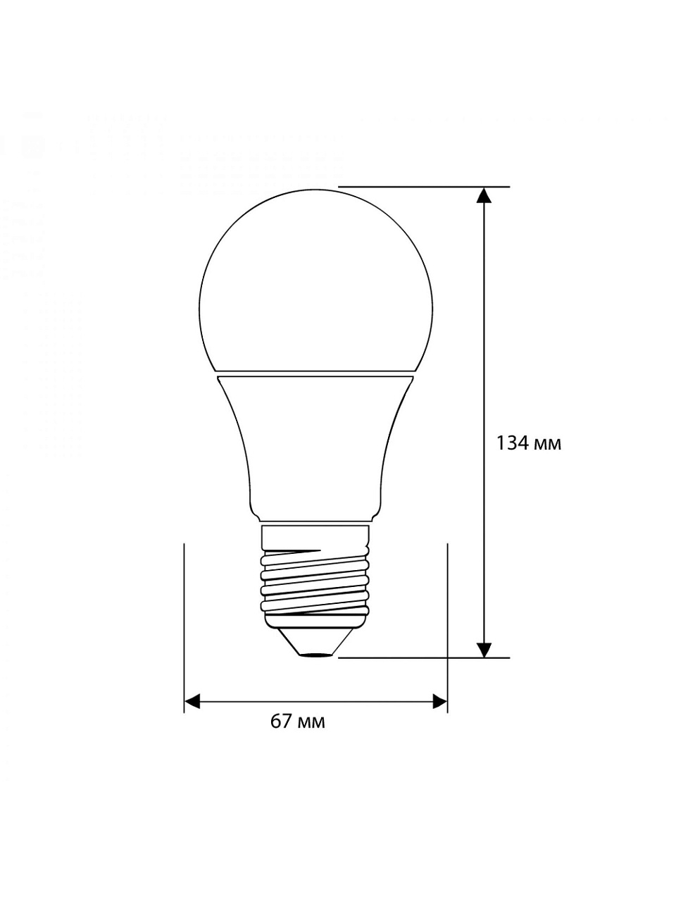 - Долговечность — 30 000 часов работы, матовая груша формата A65, стандартный цоколь E27