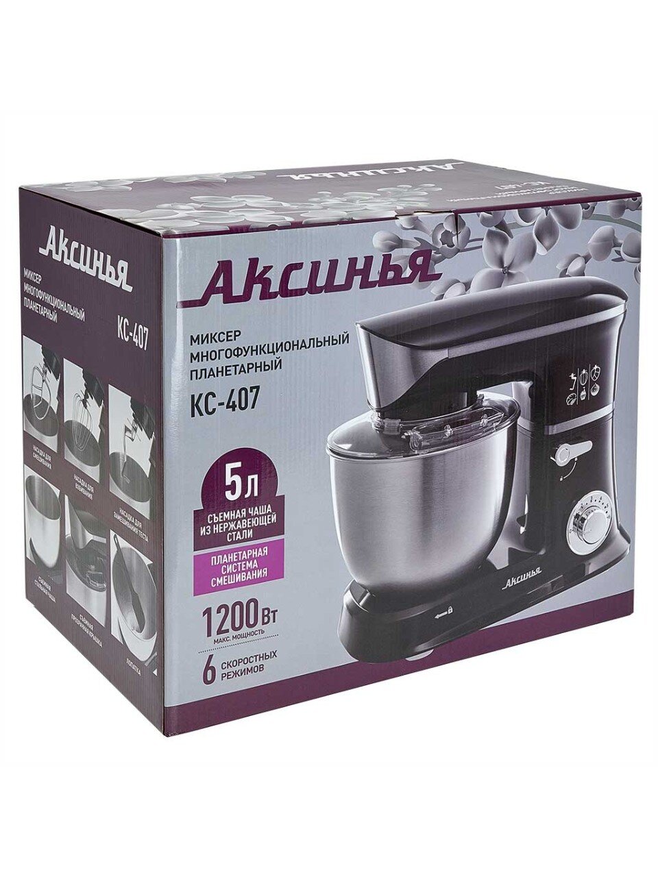 Миксер планетарный, Аксинья, КС-407, 1200 Вт, 5 л, 6 скор, чер