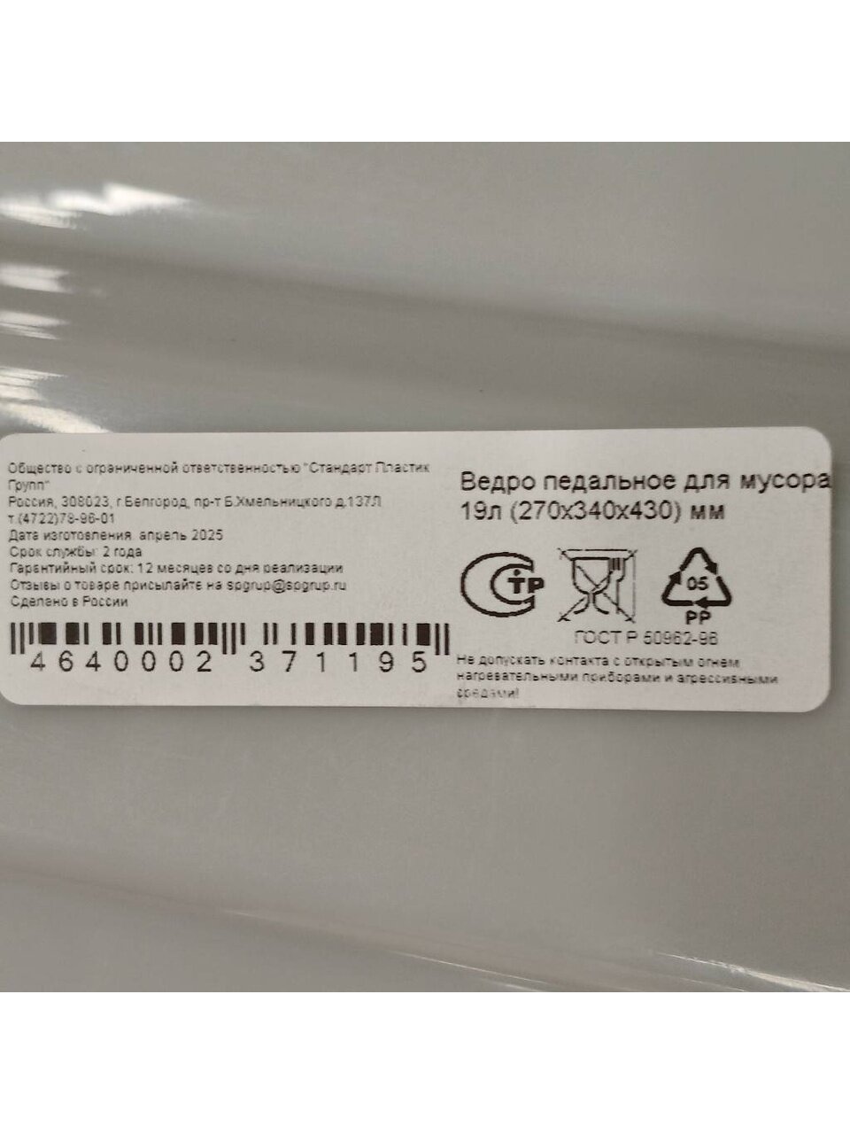 Большое и вместительное ведро предназначено для сбора и хранения мусора. Ведро можно использовать на кухне, в ванной комнате, а также офисах, медицинских учреждениях и школах, на предприятиях общественного питания и в магазинах. Благодаря педали открыть крышку ведра можно легким нажатием ноги. Крышка помогает скрыть содержимое и защитит от распространения запаха.