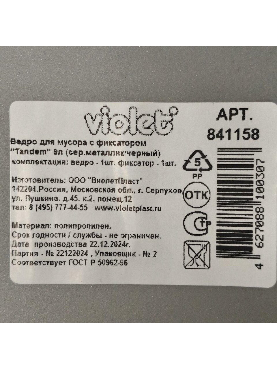 Вы можете приобрести «Контейнер для мусора пластик, 9 л, прямоугольный, с фиксатором, серый металлик, черный, Violet, Tandem, 841158» и другие товары в нашем интернет-магазине в Шахтах по низким ценам и с бесплатным самовывозом.