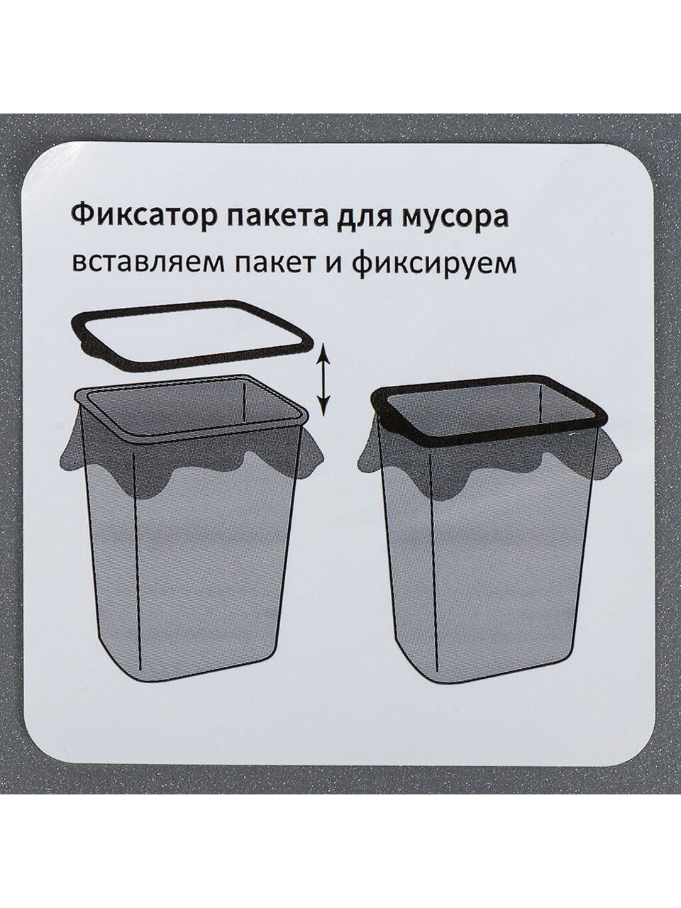 - Корзина оснащена специальным фиксирующим элементом, который позволяет закрепить мусорный пакет на ведре и не переживать, что под весом мусора пакет сползет внутрь емкости.