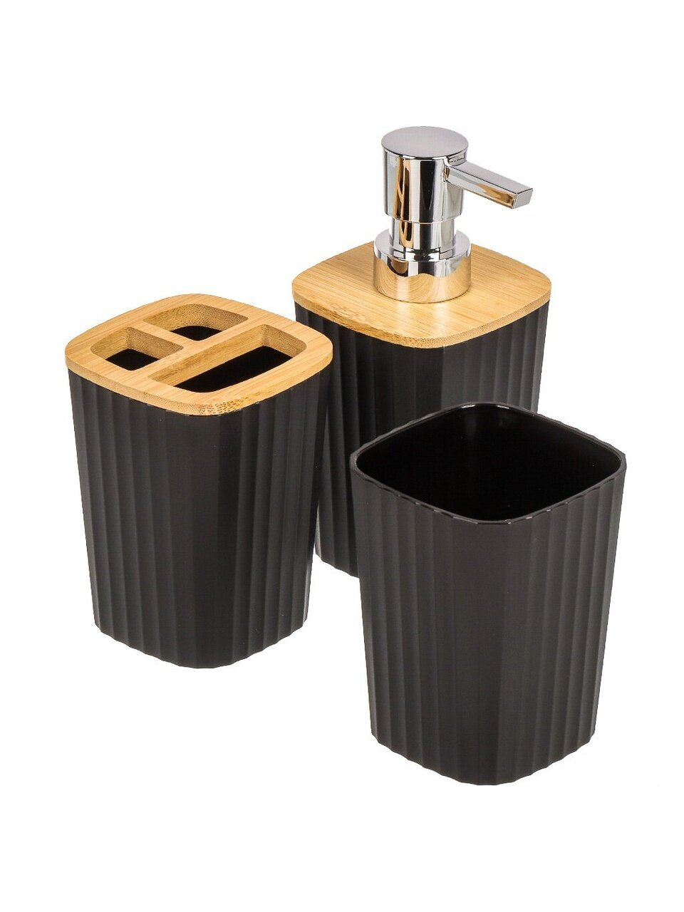 - Состав набора: ведро, ёршик, стакан, подставка для зубных щеток, дозатор для мыла, мыльница.