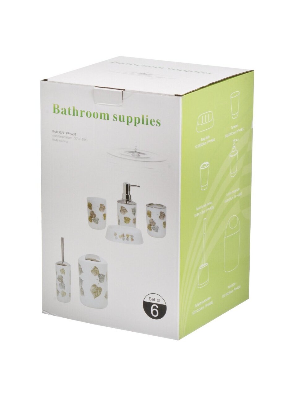 - функциональность: набор из 6 предметов позволяет удобно организовать все необходимые аксессуары для ванной;
