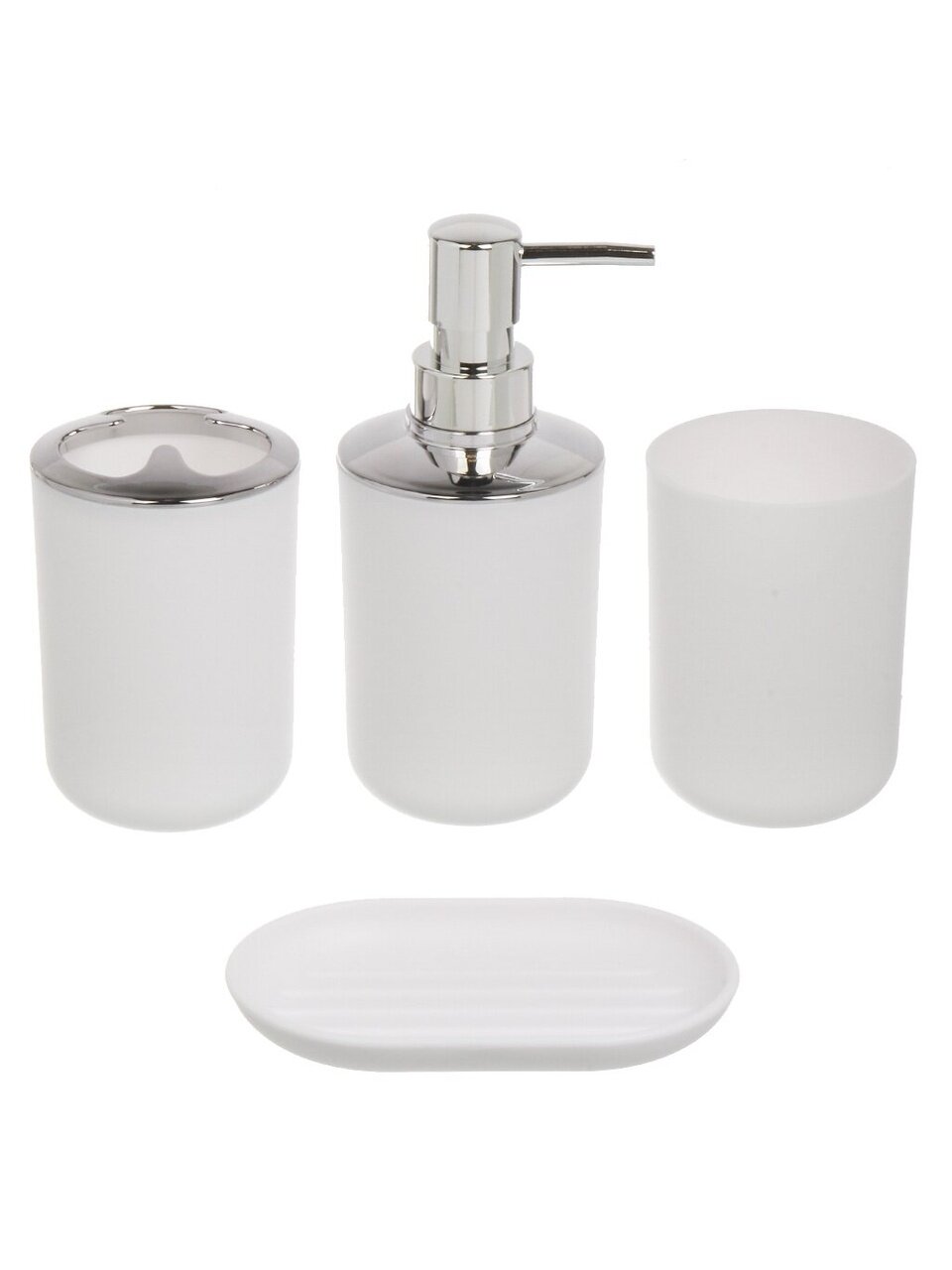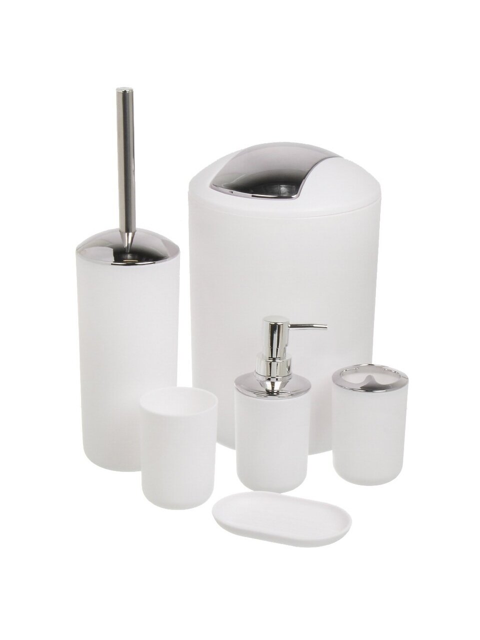 Вы можете приобрести «Набор для ванной 6 предметов, белый/хром, пластик, стакан, подставка для зубных щеток, дозатор для мыла, мыльница, A350056» и другие товары в нашем интернет-магазине в Воронеже по низким ценам и с бесплатным самовывозом.