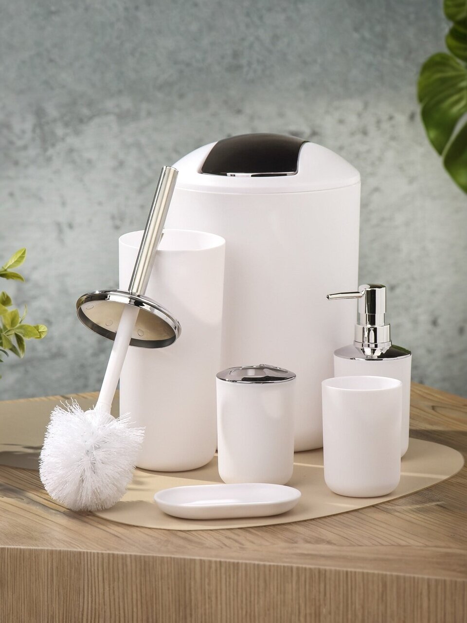 Погрузитесь в мир стиля и функциональности с набором для ванной, который станет идеальным дополнением к любой ванной комнате. Этот элегантный набор из 6 предметов сочетает в себе современный дизайн и практичность, создавая атмосферу чистоты и порядка. Белый цвет с хромированными элементами добавляет нотку роскоши и изысканности, подчеркивая ваш утонченный вкус.