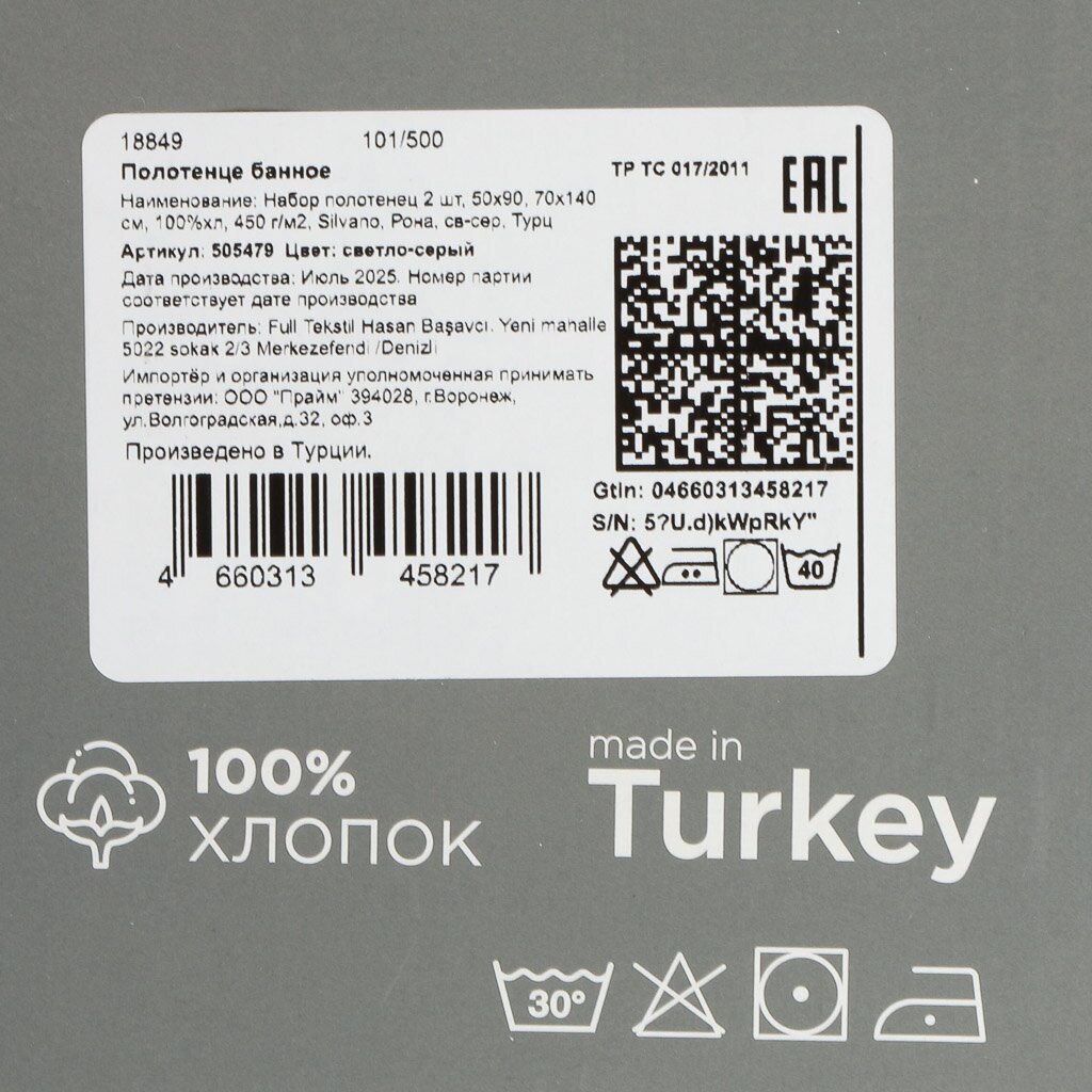 Вы можете приобрести «Набор полотенец 2 шт, 50х90, 70х140 см, 100%хл, 450 г/м2, Silvano, Рона, св-сер, Турц» и другие товары в нашем интернет-магазине в Ставрополе по низким ценам и с бесплатным самовывозом.