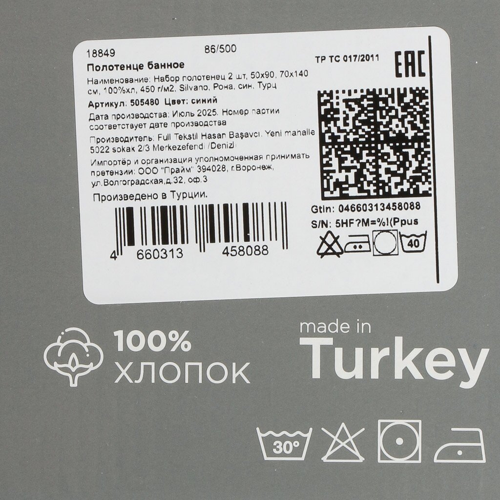 Вы можете приобрести «Набор полотенец 2 шт, 50х90, 70х140 см, 100%хл, 450 г/м2, Silvano, Рона, син, Турц» и другие товары в нашем интернет-магазине в Ставрополе по низким ценам и с бесплатным самовывозом.