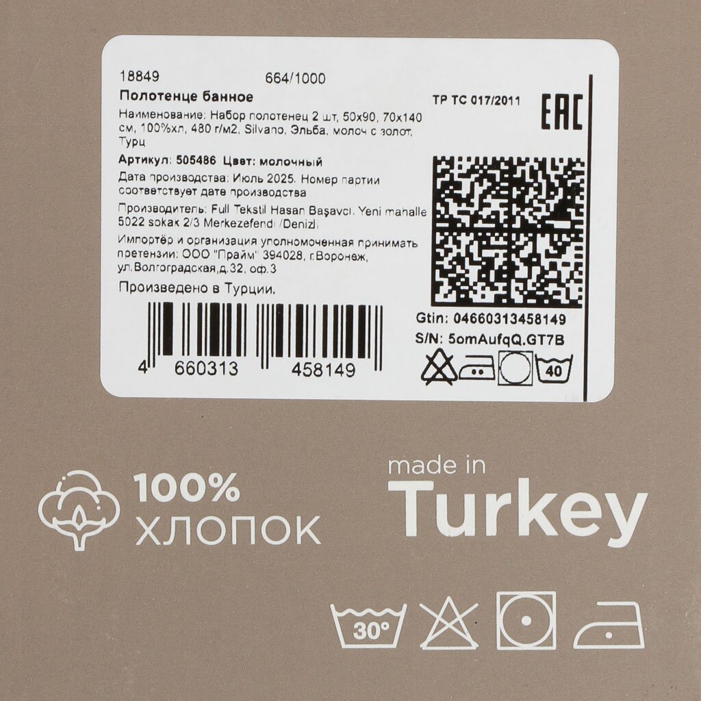 Вы можете приобрести «Набор полотенец 2 шт, 50х90, 70х140 см, 100%хл, 480 г/м2, Silvano, Эльба, молоч с золот, Турц» и другие товары в нашем интернет-магазине в Ставрополе по низким ценам и с бесплатным самовывозом.