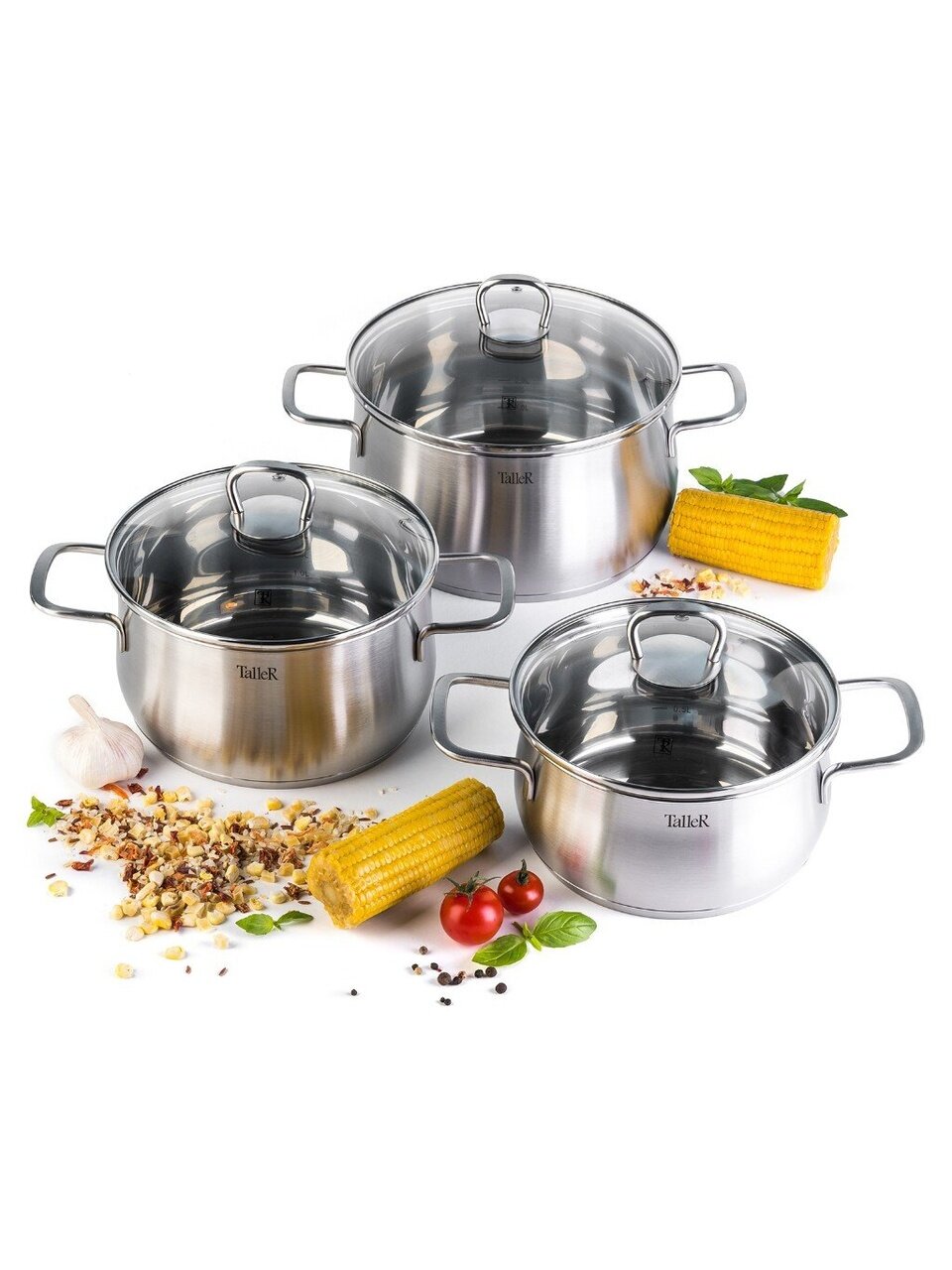 Премиум набор посуды Taller Бригг: 3 предмета из нержавеющей стали для всех типов плит — идеальный выбор для дома, дачи и подарка.
