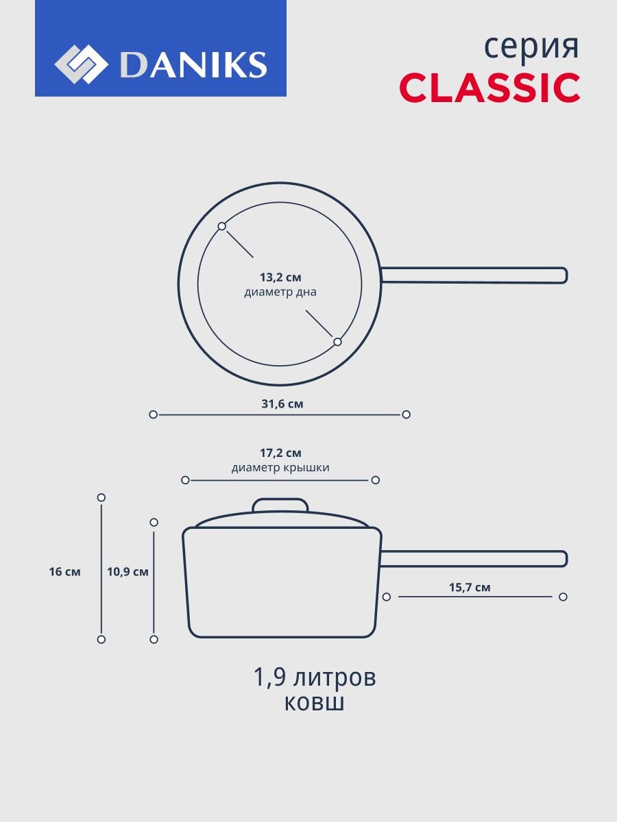 Набор посуды из нержавеющей стали Daniks Классика 12 предметов: универсальное решение для кухни, дачи и подарка. Готовьте супы, каши и пюре на любой плите — долговечно и выгодно.