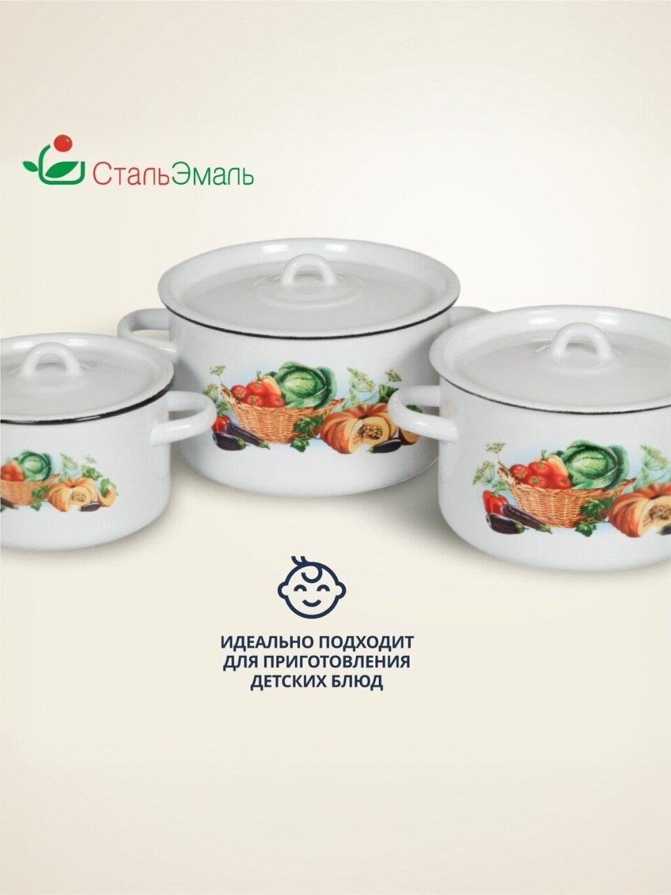 Вы можете приобрести «Набор посуды эмалированная сталь, 3 предмета, кастрюли 1.5,2.9,4.5 л, индукция, СтальЭмаль, Урожай, 1с33» и другие товары в нашем интернет-магазине в Казани по низким ценам и с бесплатным самовывозом.