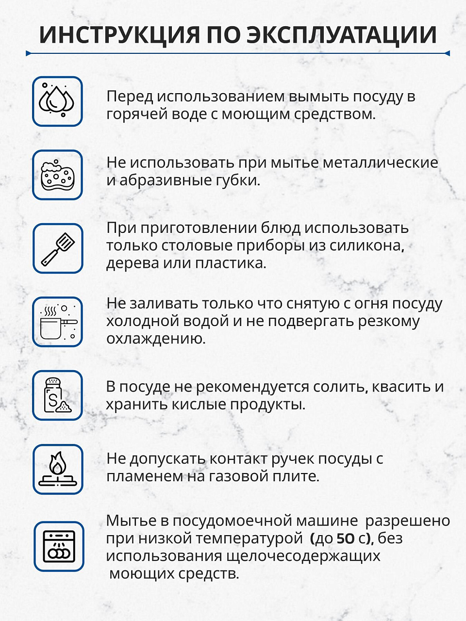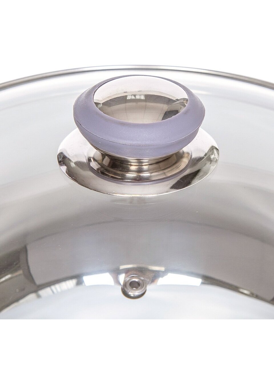 Корпус посуды выполнен из нержавеющей стали, толщина 0.5 мм, крышки — из термостойкого стекла. Такой материал устойчив к коррозии и сохраняет внешний вид даже при частом использовании. Толщина дна: 3 мм.