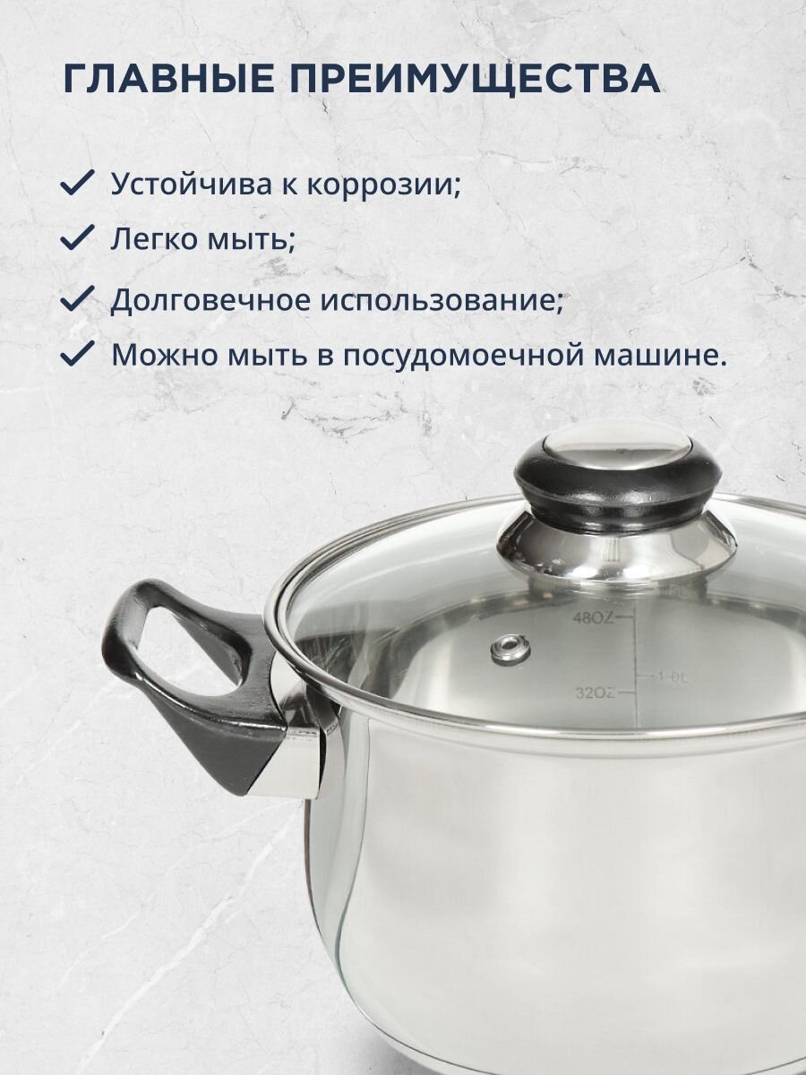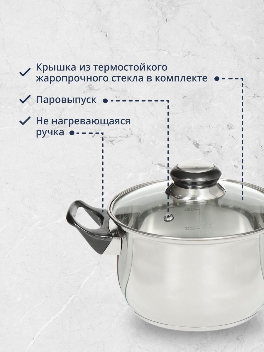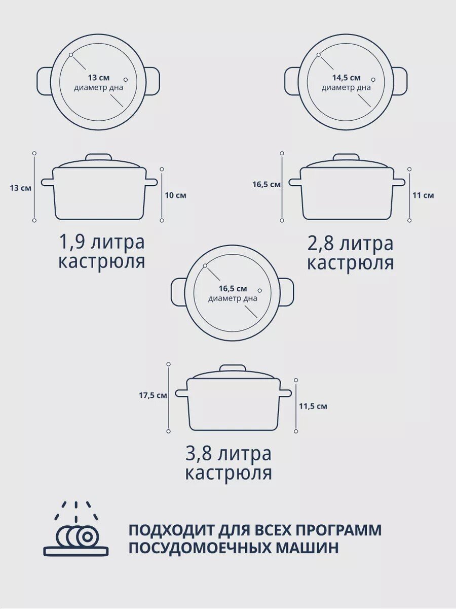 - Универсальный набор: три кастрюли разных объёмов для любых блюд и сценариев