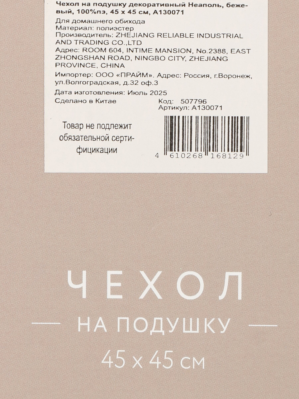 Наволочка декоративная Неаполь 45×45 см, бежевый — стильное обновление интерьера за 1 минуту: мягкий 100% полиэстер, практичность, универсальный дизайн.