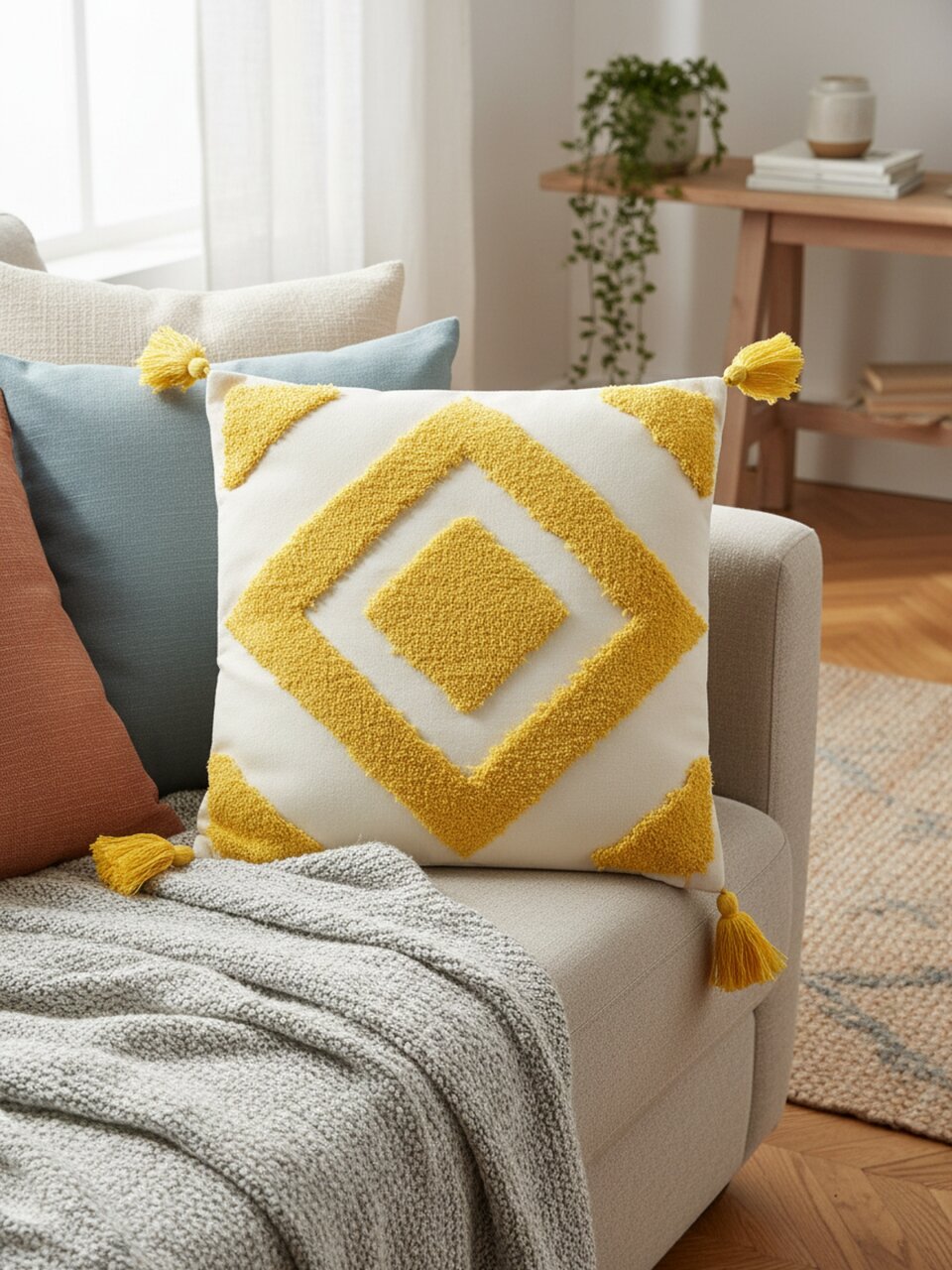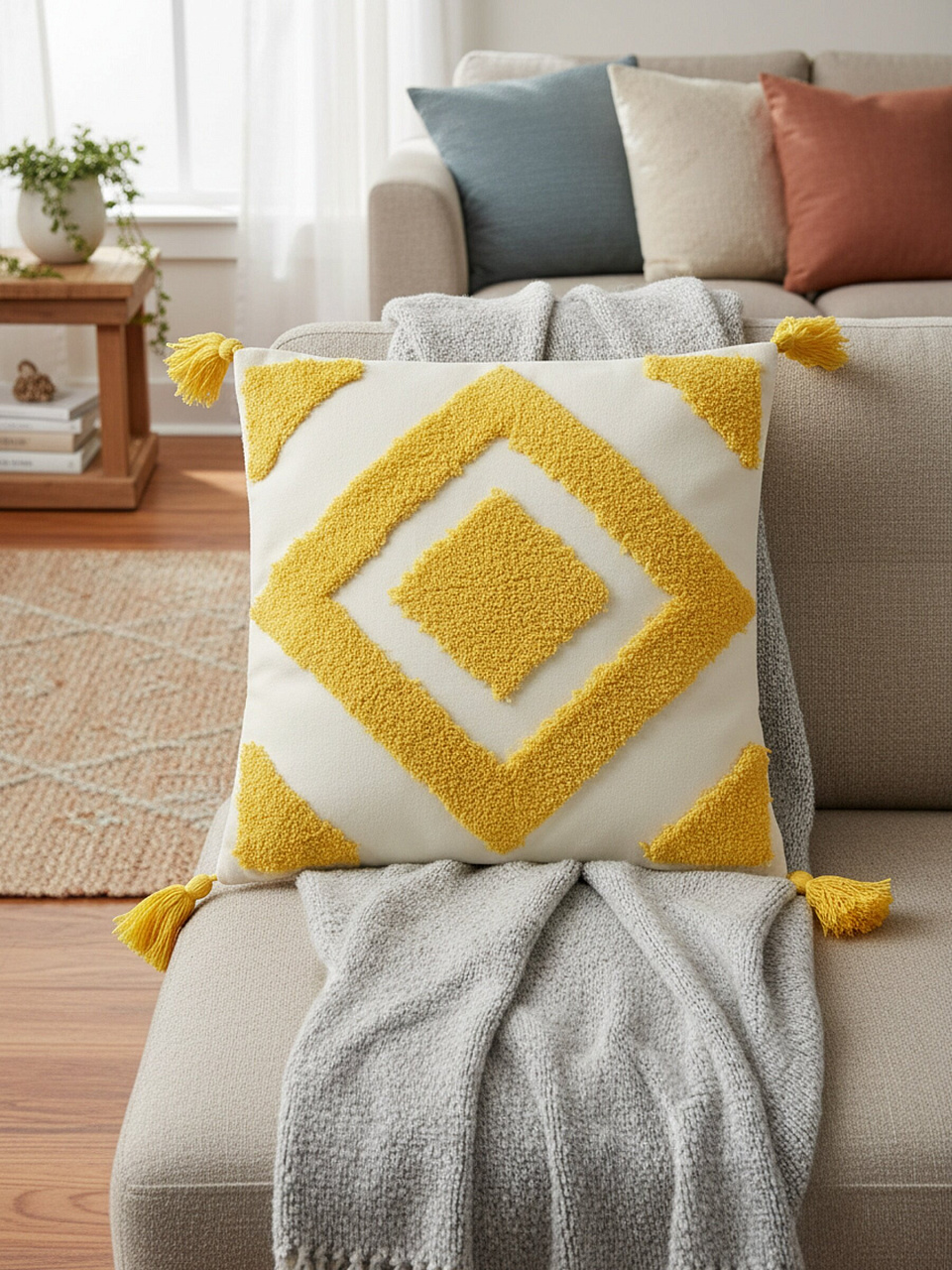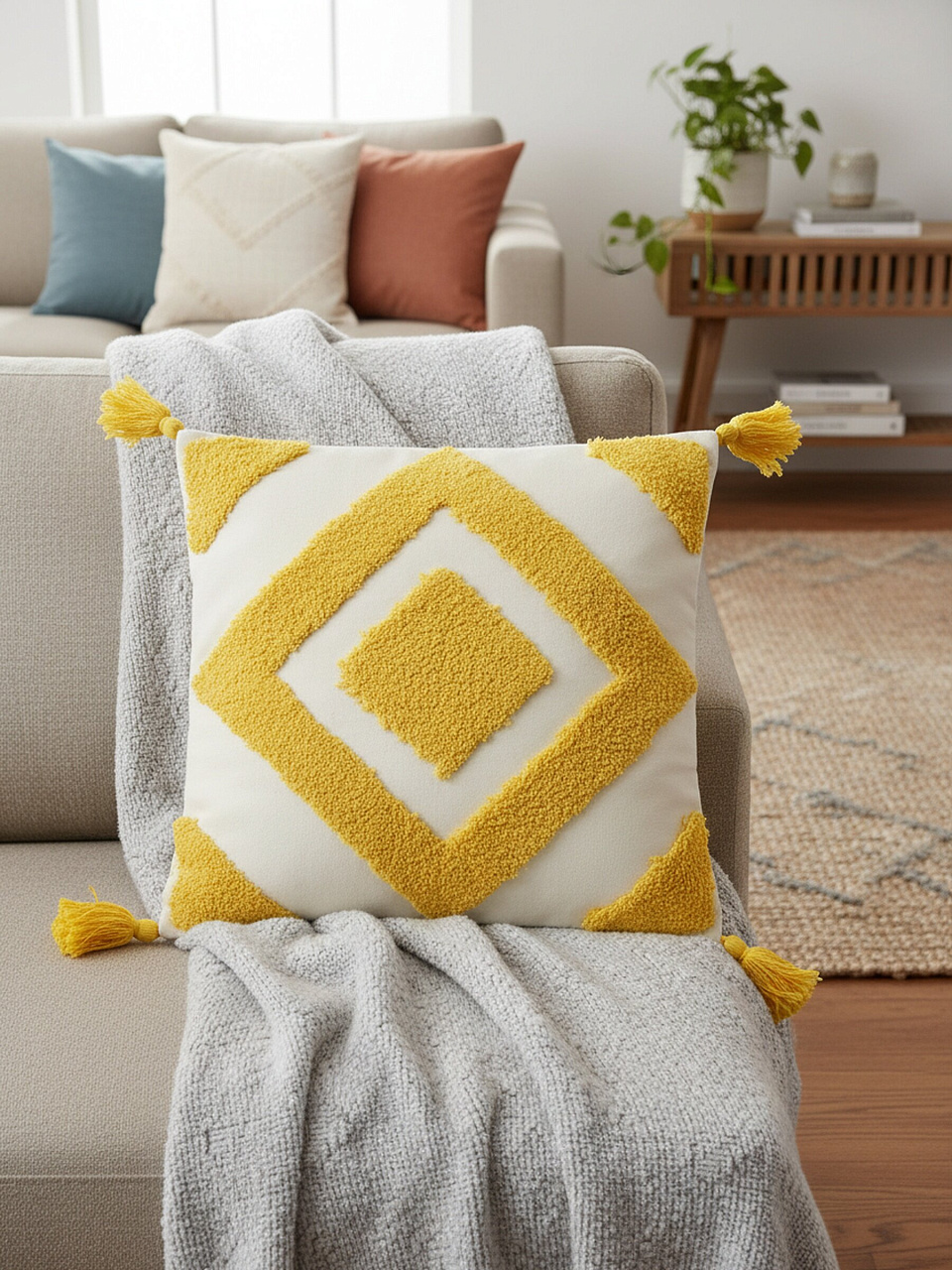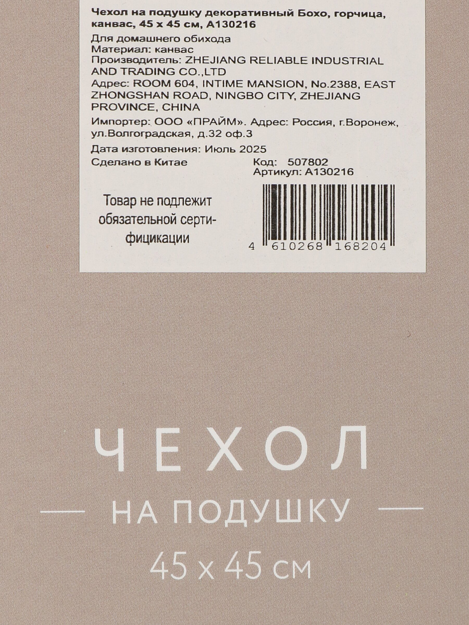 Декоративная наволочка Бохо 45x45 см из канваса: стильный горчичный акцент для уюта в гостиной, на даче или в подарок — легко стирать, долговечна, выгодно купить онлайн.