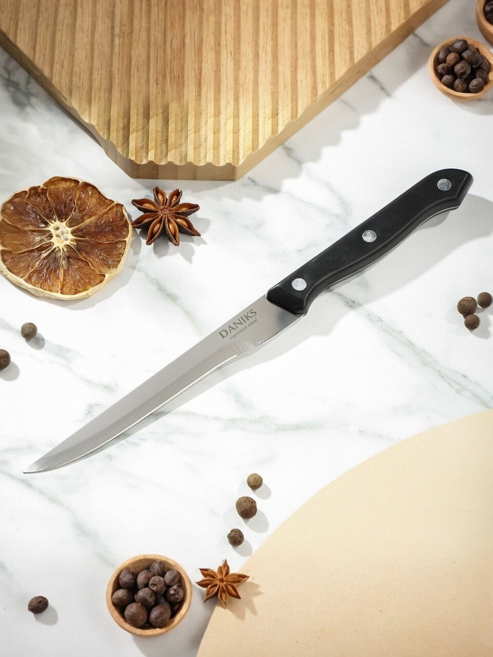 Вы можете приобрести «Нож кухонный Daniks, Классик, филейный, нержавеющая сталь, 14 см, рукоятка пластик, YW-A111-BO» и другие товары в нашем интернет-магазине в Клинцах по низким ценам и с бесплатным самовывозом.