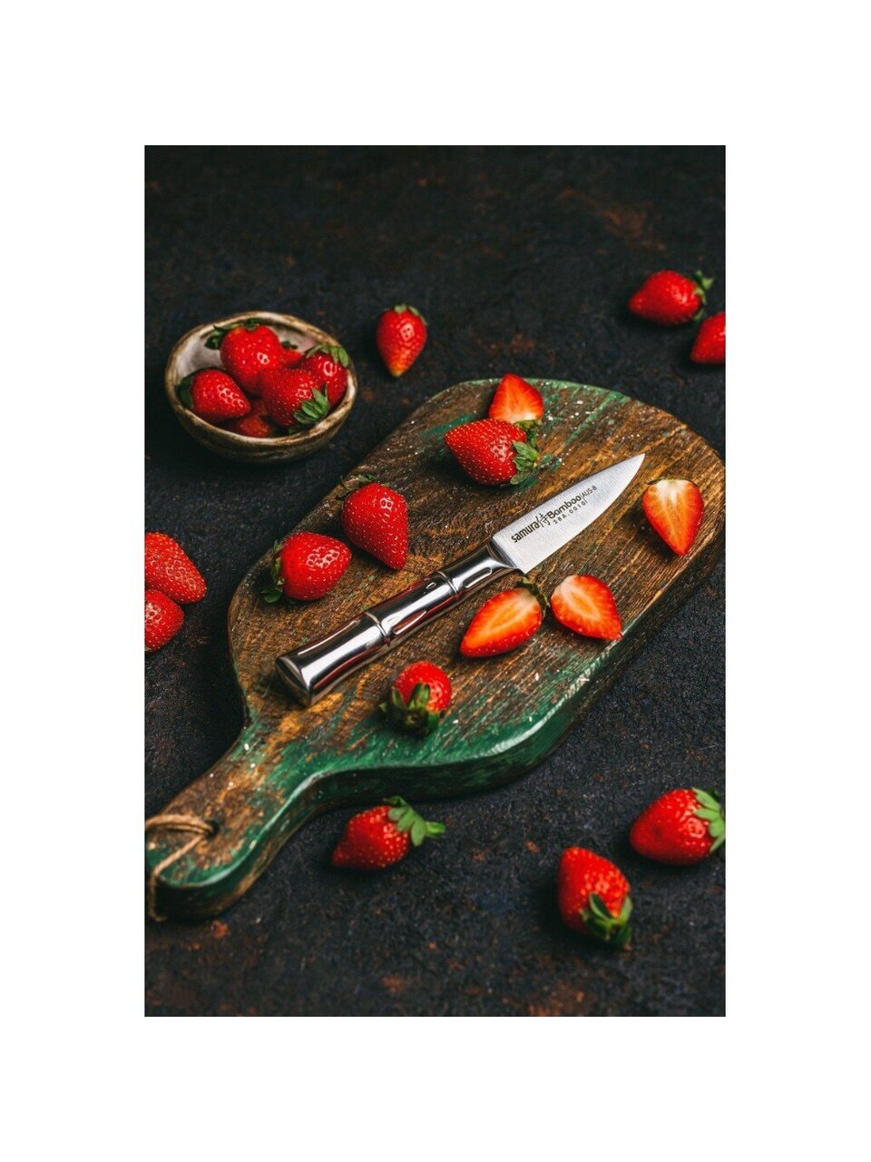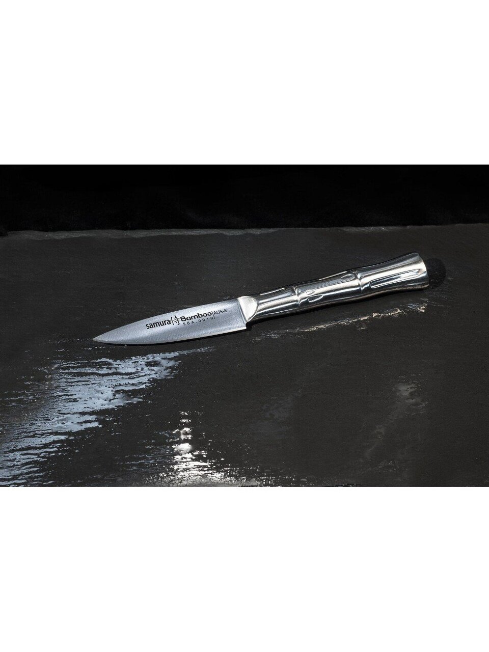 Вы можете приобрести «Нож кухонный Samura, Bamboo, для овощей, нержавеющая сталь, 8 см, рукоятка сталь, SBA-0010/K» и другие товары в нашем интернет-магазине в Иваново по низким ценам и с бесплатным самовывозом.