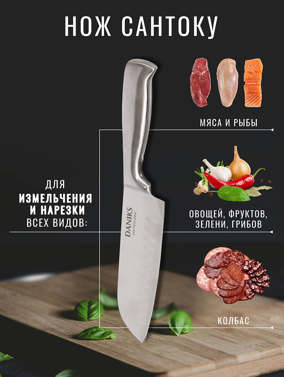 Вы можете приобрести «Нож кухонный Daniks, Ферра, сантоку, нержавеющая сталь, 20 см, рукоятка сталь, YW-A042-SN» и другие товары в нашем интернет-магазине в Ярославле по низким ценам и с бесплатным самовывозом.