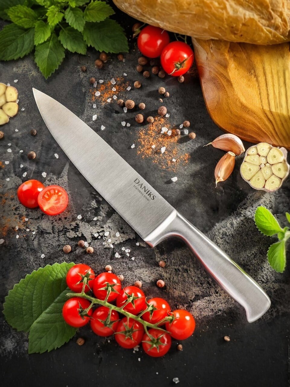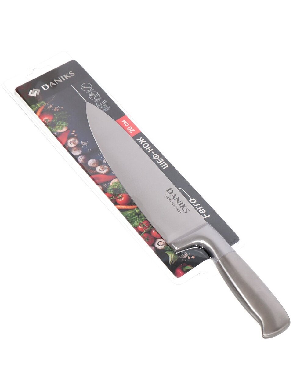 Вы можете приобрести «Нож кухонный Daniks, Ферра, шеф-нож, нержавеющая сталь, 20 см, рукоятка сталь, YW-A042-CH» и другие товары в нашем интернет-магазине в Казани по низким ценам и с бесплатным самовывозом.