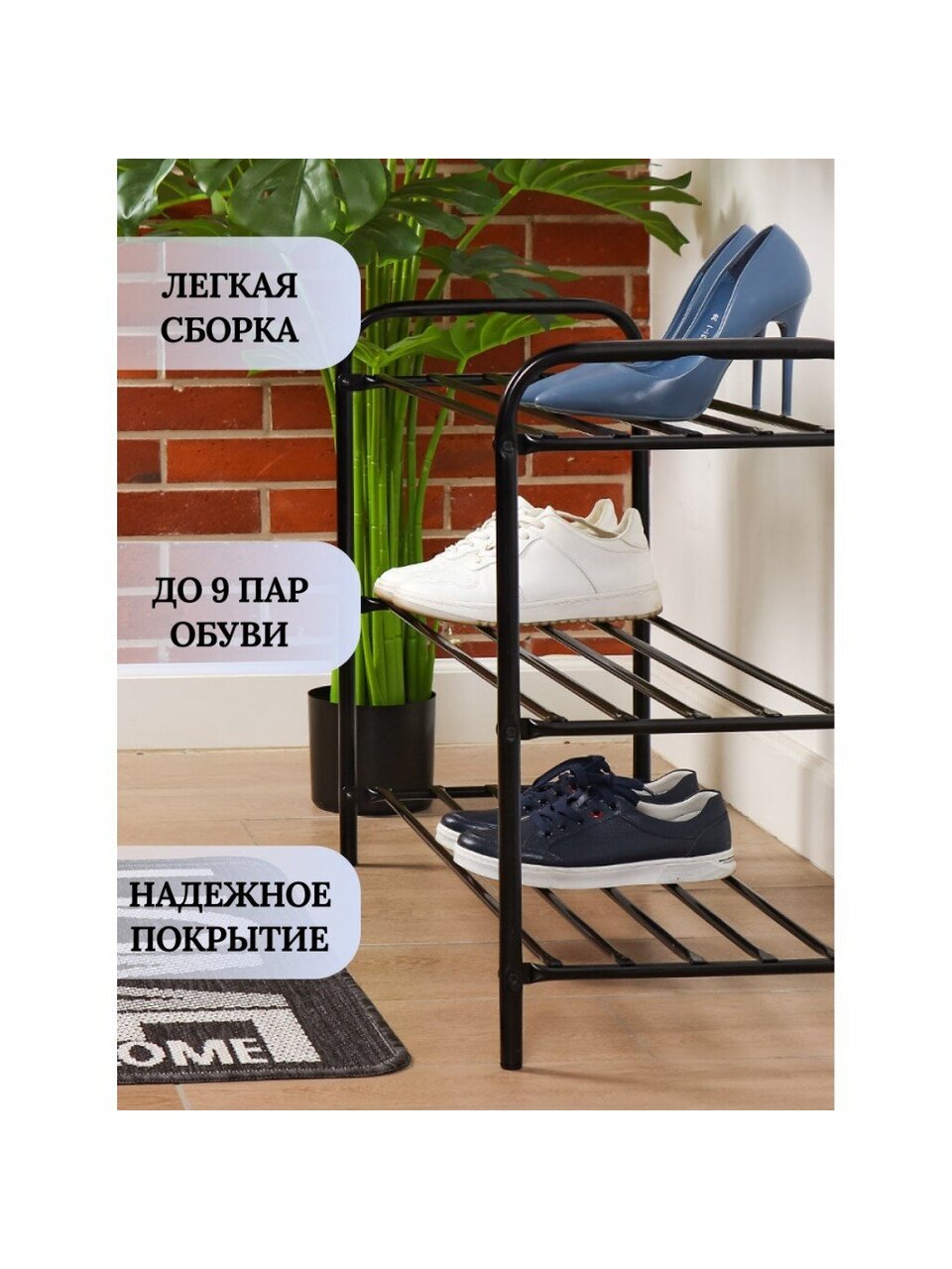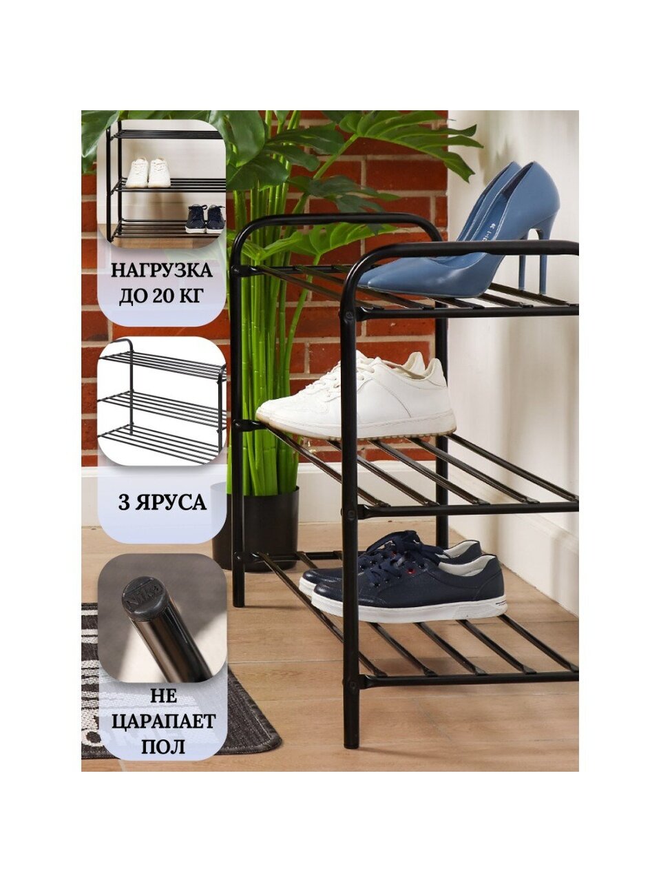 Вы можете приобрести «Полка для обуви, металл, 3 секции, 79х33х59 см, черная, Nika, ЭТК3/Ч» и другие товары в нашем интернет-магазине в Астрахани по низким ценам и с бесплатным самовывозом.