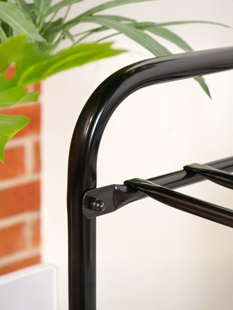Этажерка НИКА ЭТК3/Ч – недорогое и удобное в использовании изделие. Максимально допустимая нагрузка – 20 кг. Специальное покрытие защищает конструкцию от возникновения и развития коррозийных процессов из-за соприкосновения с влажной обувью. Включенные в комплект пластиковые колпачки на ножки предохранят напольное покрытие от царапин и придадут всей конструкции большую устойчивость.