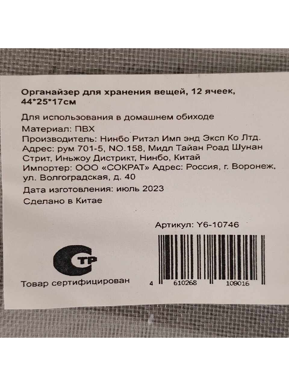 - Артикул производителяY6-10746