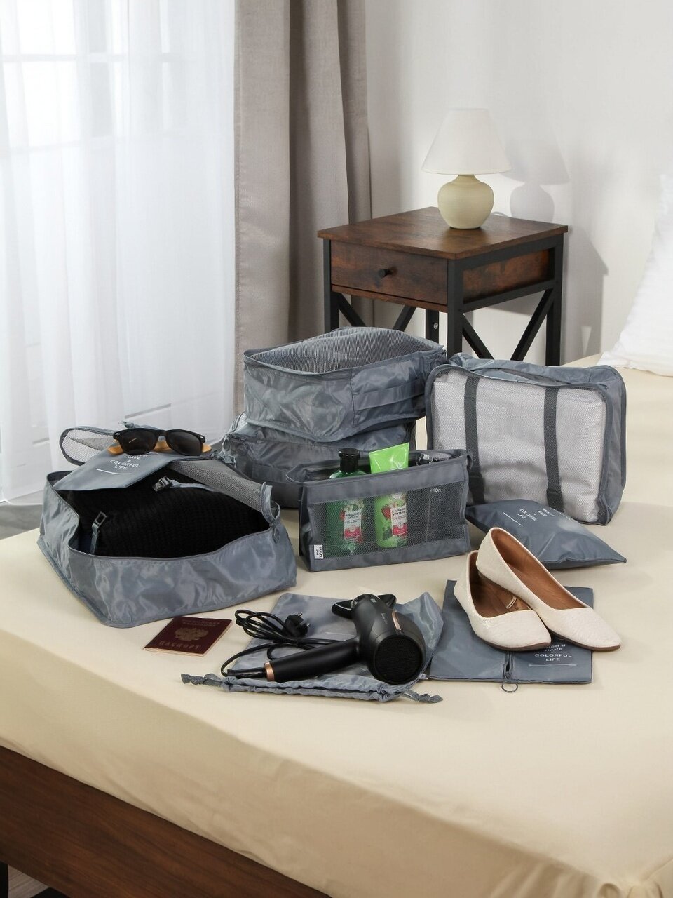 Органайзер изготовлен из высококачественного полиэстера, что обеспечивает его долговечность и надежность. Серый цвет добавляет стильности и элегантности, идеально подходя для любого чемодана. Комплект из 9 предметов позволит удобно разместить все необходимые вещи, от одежды до аксессуаров, обеспечивая легкий доступ к ним в любое время.