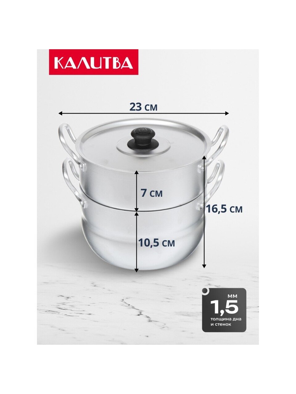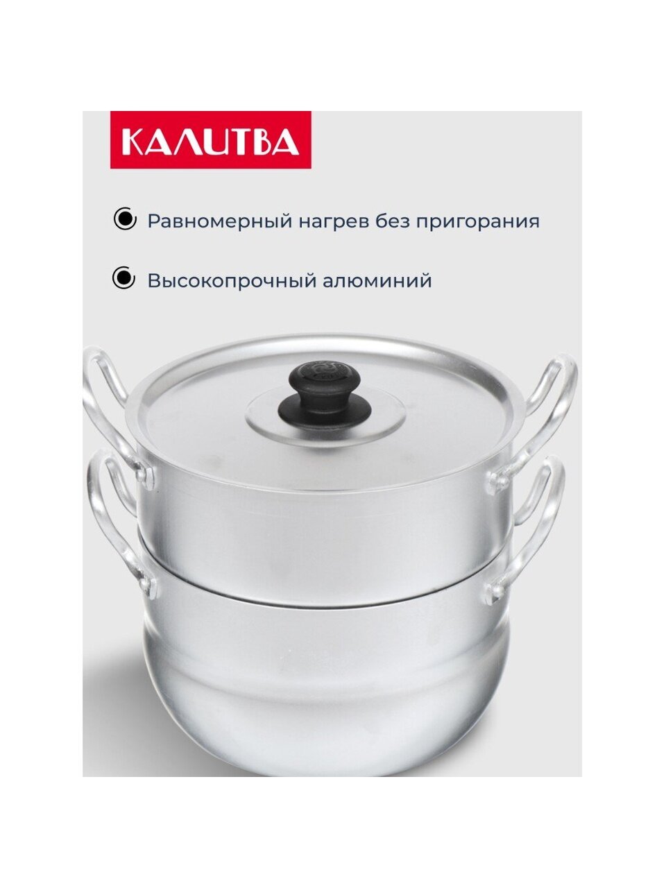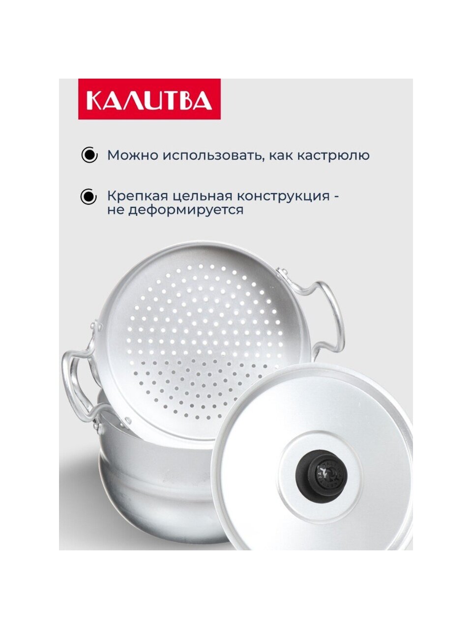 Кастрюля-пароварка "Калитва" изготовлена из качественного алюминия. Состоит из 2 уровней: нижней кастрюли и кастрюли с отверстиями в основании. Такая пароварка идеально подходит для приготовления и разогрева продуктов на пару: блюда быстро разогреваются, а материал хорошо сохраняет тепло. Такой способ приготовления продуктов сохраняет в них полезные витамины и минералы. Кастрюля оснащена удобными ручками и крышкой. Подходит для газовых и электрических плит.