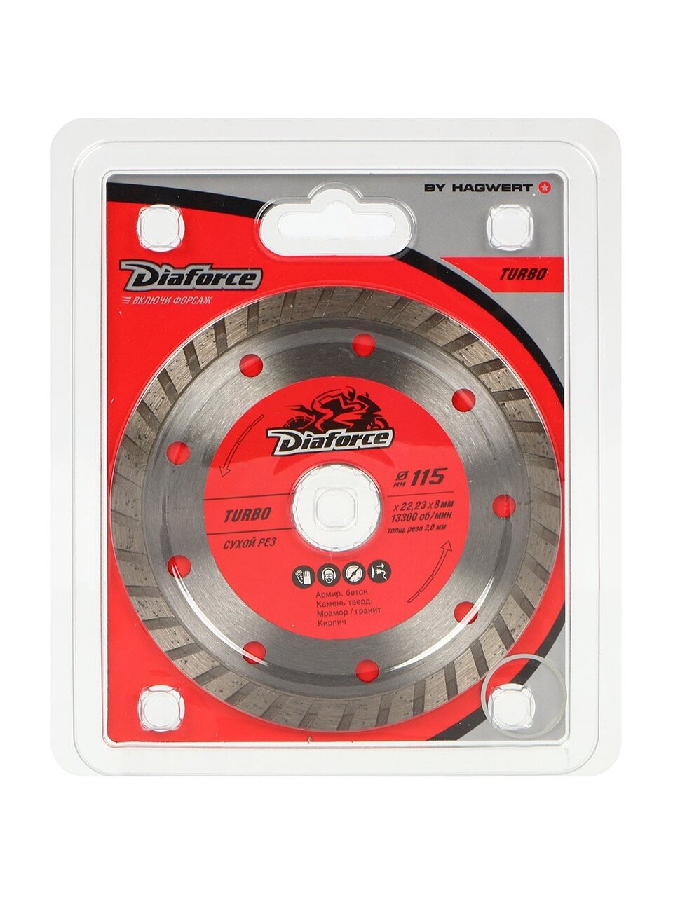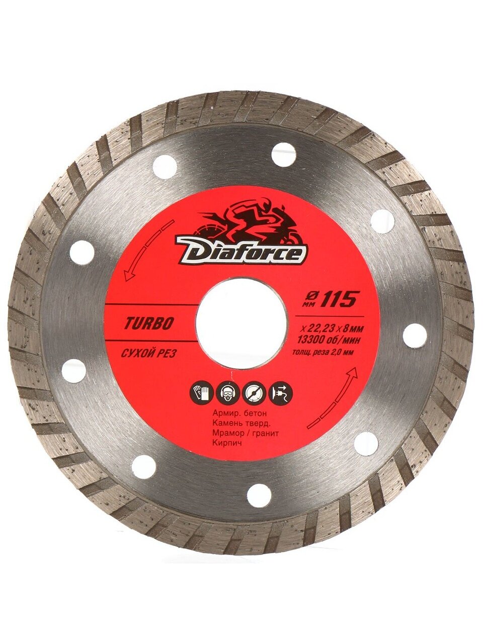 Вы можете приобрести «Диск отрезной алмазный по армированному бетону, Diaforce, Turbo, сплошной край, 115х22.23х2 мм, сухой рез, 501115» и другие товары в нашем интернет-магазине в Брянске по низким ценам и с бесплатным самовывозом.