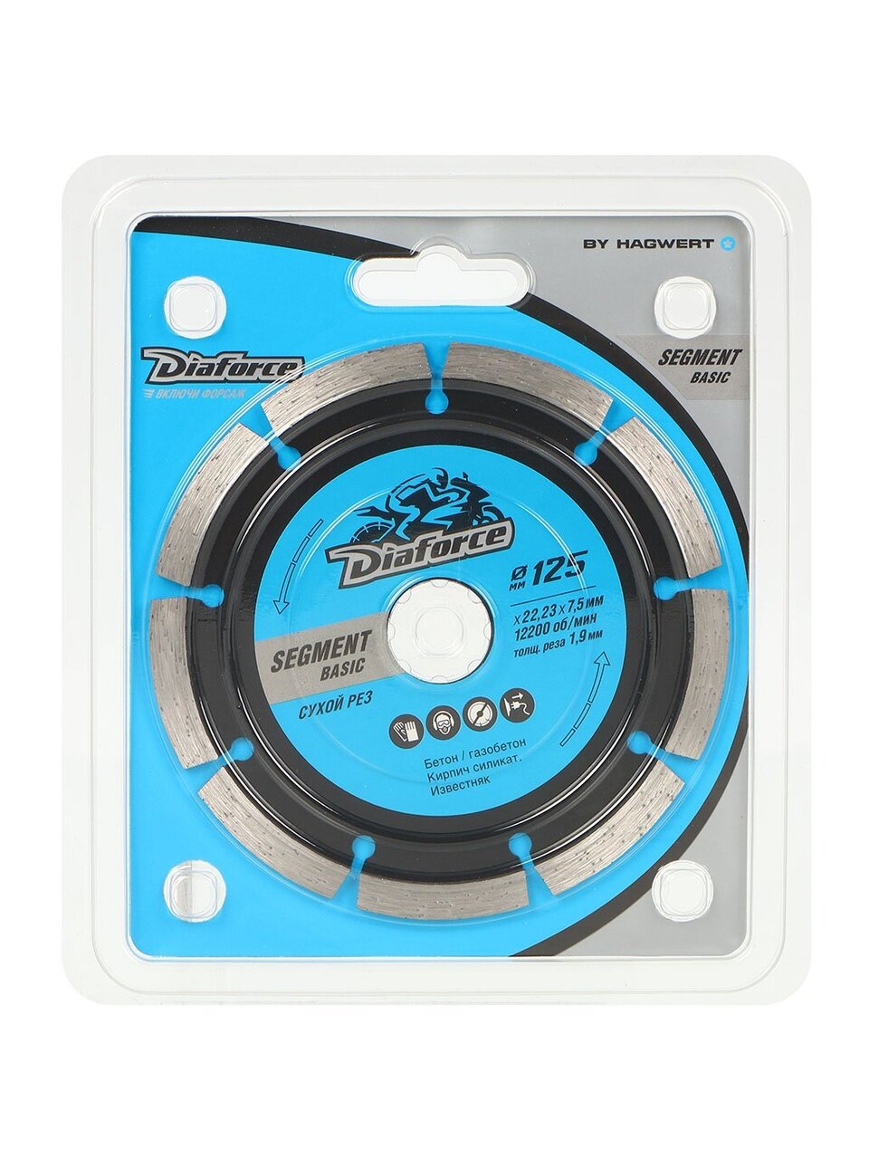 Вы можете приобрести «Диск отрезной алмазный по бетону, Diaforce, Segment Basic, сегментный край, 125х22.23х1.9 мм, сухой рез, 510125» и другие товары в нашем интернет-магазине в Смоленске по низким ценам и с бесплатным самовывозом.