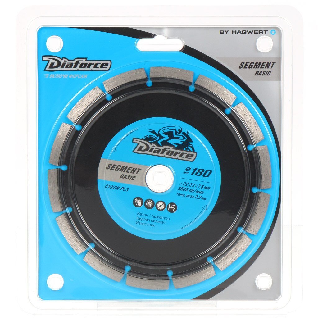 Вы можете приобрести «Диск отрезной алмазный по бетону, Diaforce, Segment Basic, сегментный край, 180х22.23х2.2 мм, сухой рез, 510180» и другие товары в нашем интернет-магазине в Орле по низким ценам и с бесплатным самовывозом.