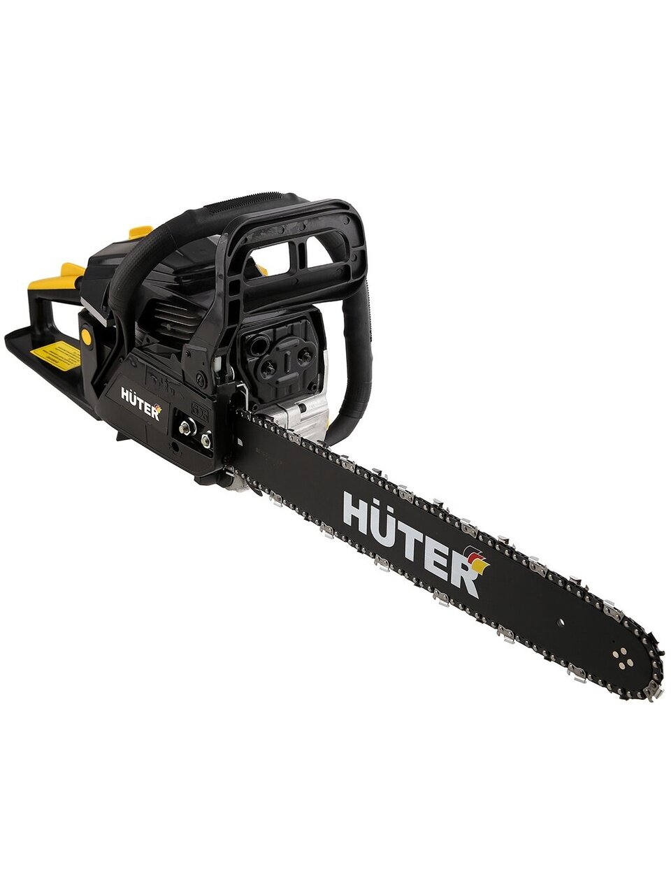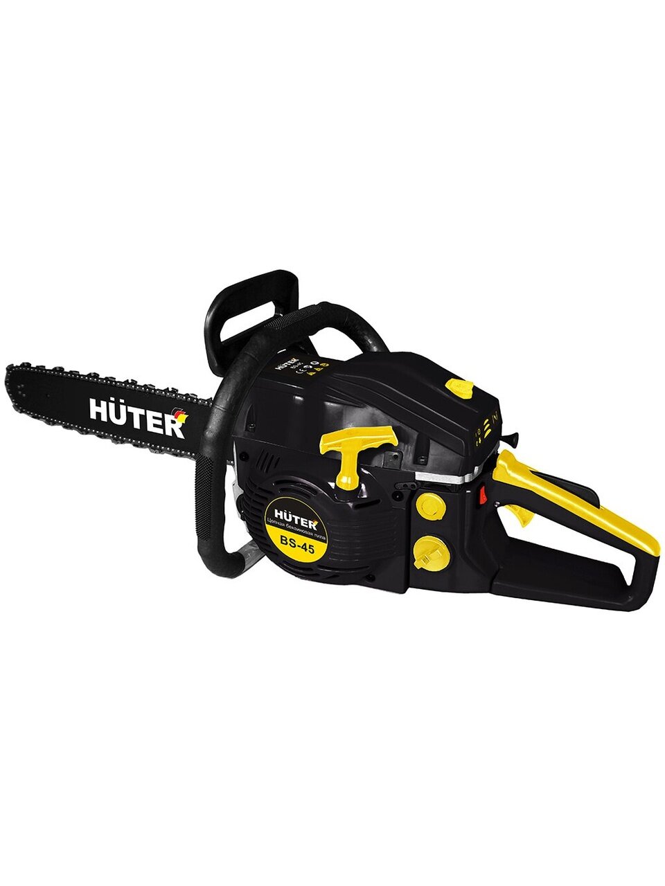 Бензопила HUTER BS-45 является цепной пилой, приводимой в действие бензиновым двухтактным двигателем с ручным запуском, объемом 45 см3, развивающим мощность 1,8 кВт. Это позволяет поддерживать довольно высокую скорость распила. Цепная шина длиной 450 мм дает возможность срезать небольшое дерево, заготовить дрова, ухаживать за садом. В комплекте поставки имеется и шина длинной 450 мм. Пила снабжена также аварийным тормозом цепи, автоматической смазкой цепи и системой антивибрации, что делает процесс ее использования безопасным и достаточно комфортным.