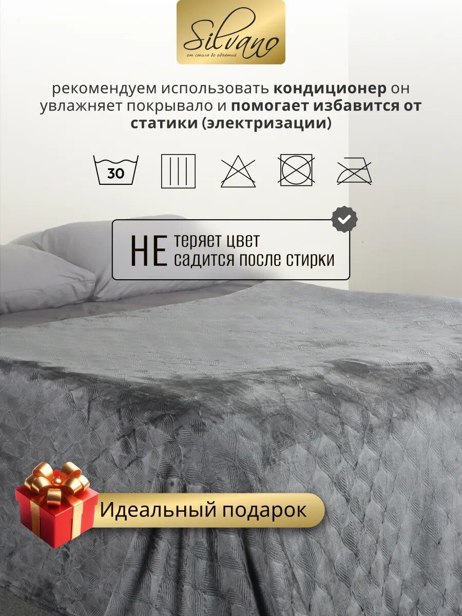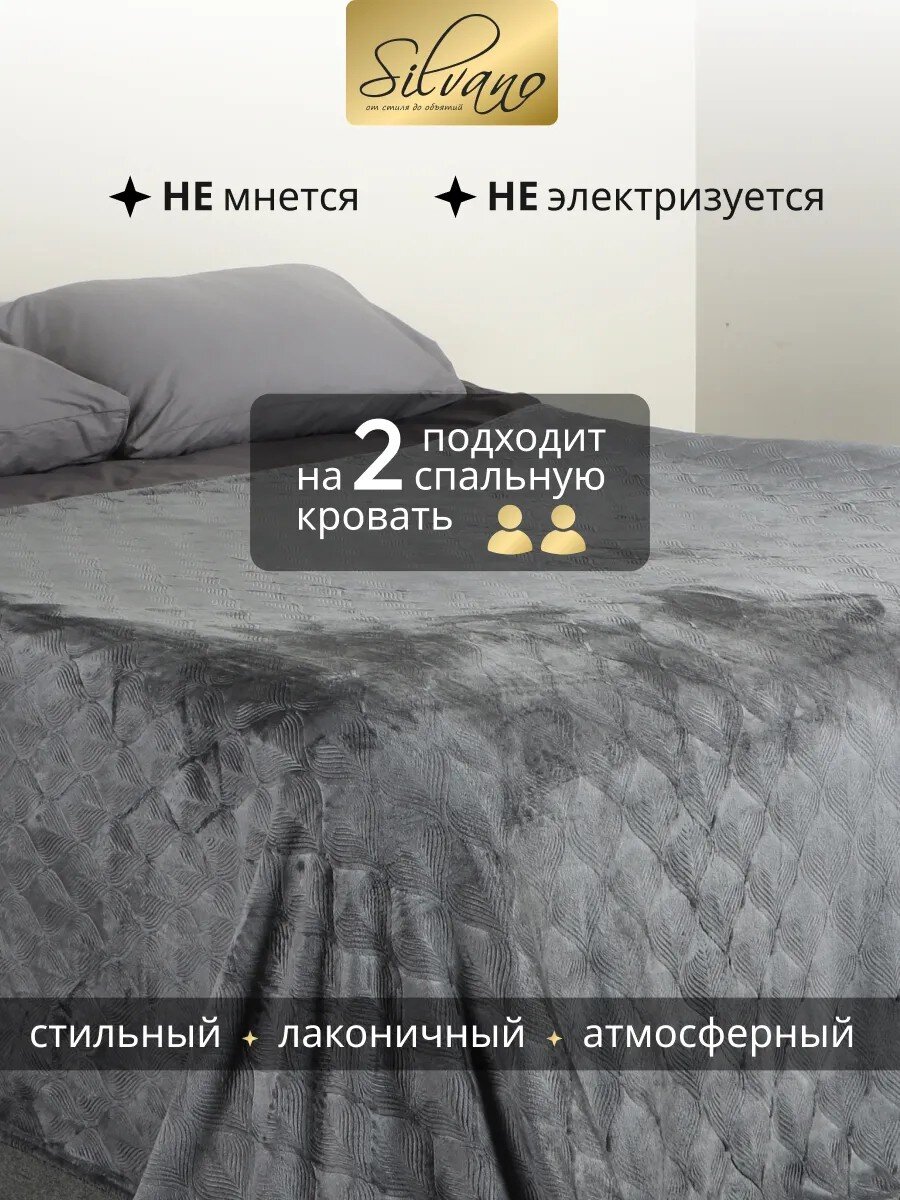 Плед евро 200х220 см Silvano Lotus: мягкий велсофт жаккард, стильный серый цвет, идеален для уюта дома и дачи. Закажите недорого с быстрой доставкой.