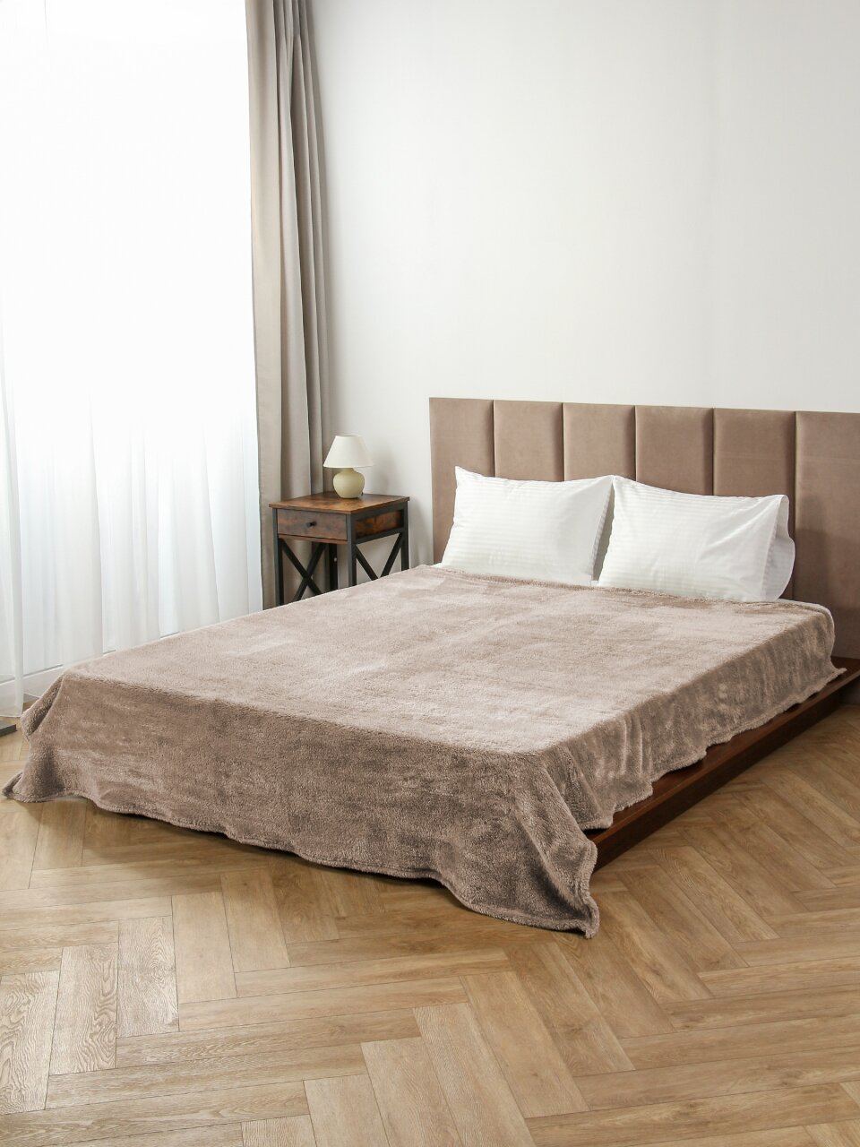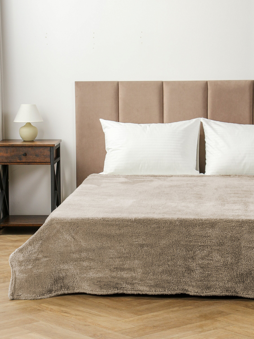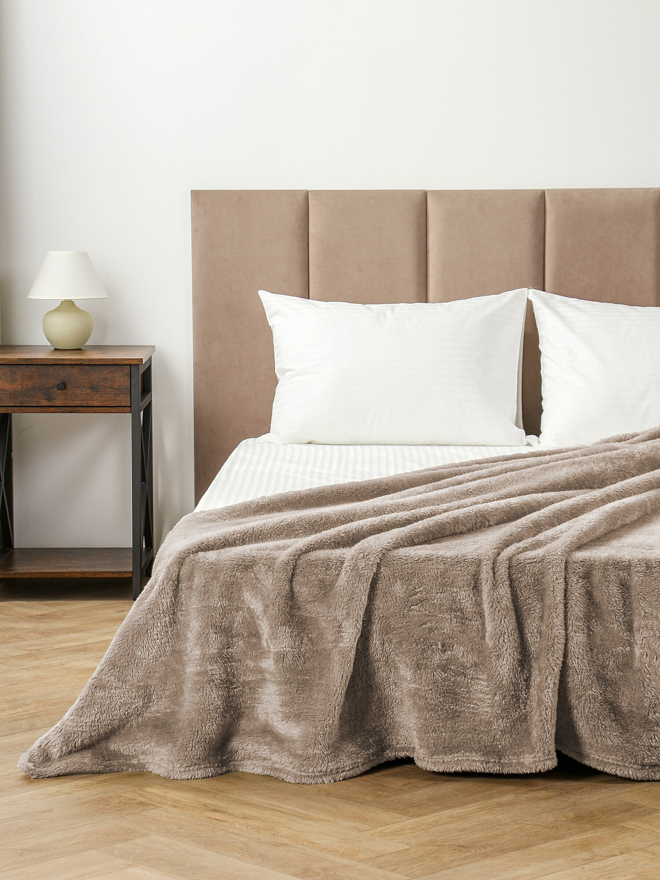 Плед евро, 200х220 см, велсофт жаккард, 100% полиэстер, Silvano, Шерпа, бежевый, BARRO 3