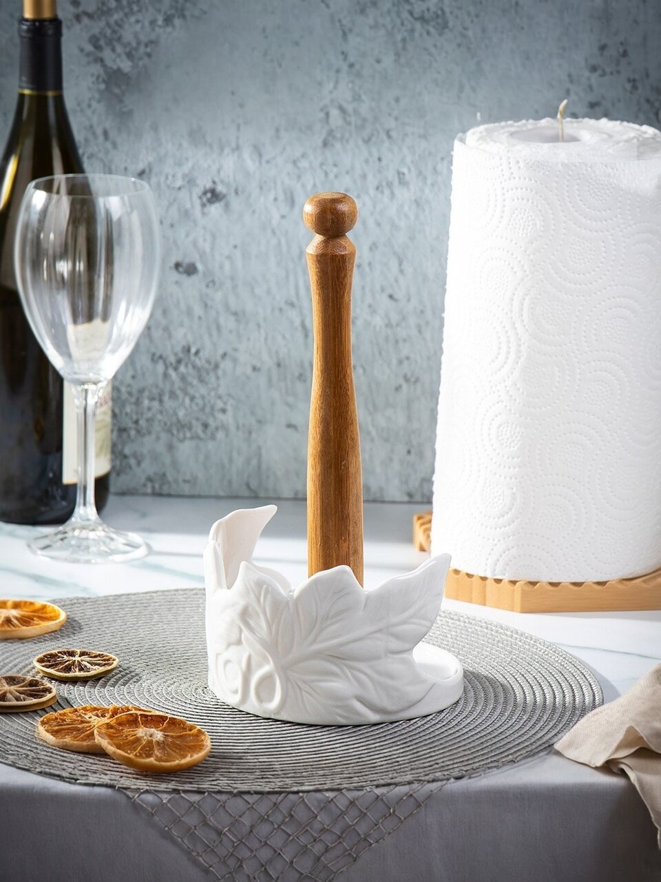 Держатель для бумажных полотенец - это необходимый аксессуар в современном интерьере. Конструкция держателя позволяет разместить его, не используя шурупы. Подходит для рулонов стандартного размера. Изготовлен из экологически чистого материала.